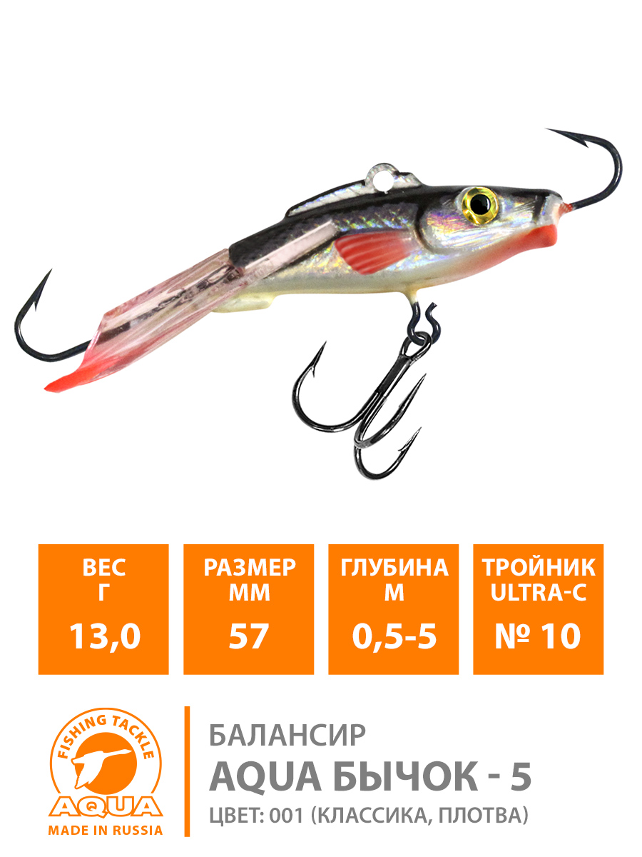 Балансир Aqua Бычок-5 57мм 13гр цвет 001 (классика, плотва)