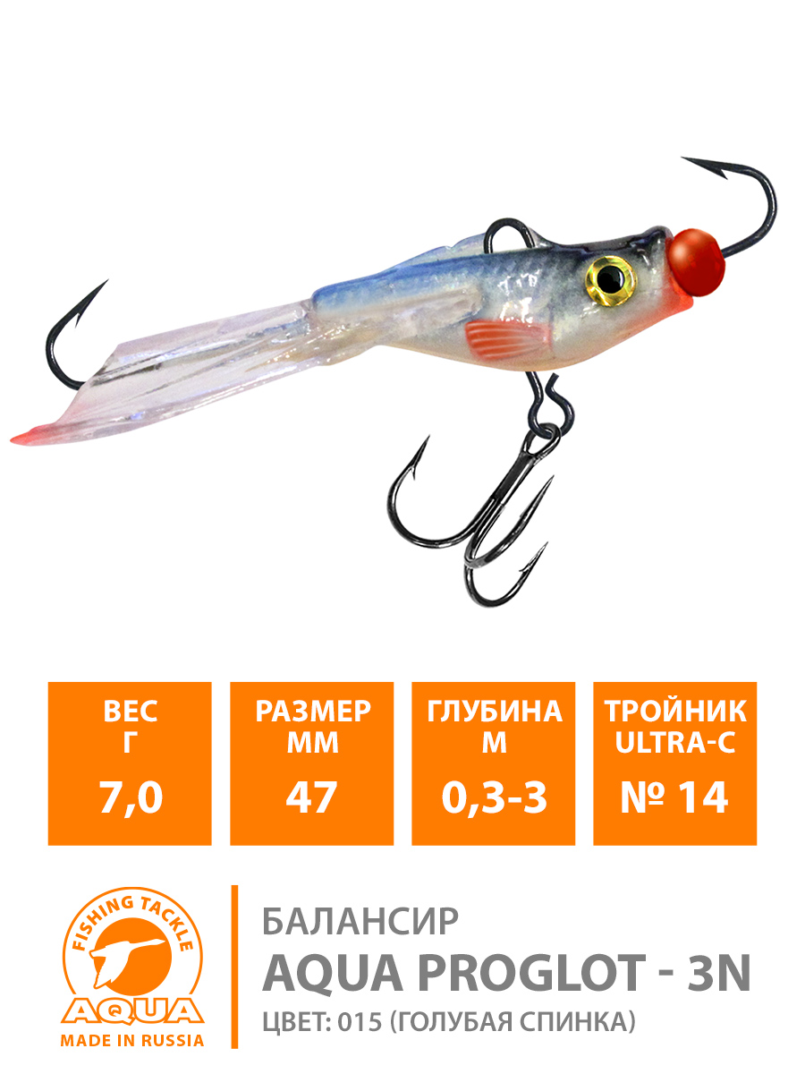 Балансир Aqua Proglot-3N 47мм 7гр цвет 015 (голубая спинка)