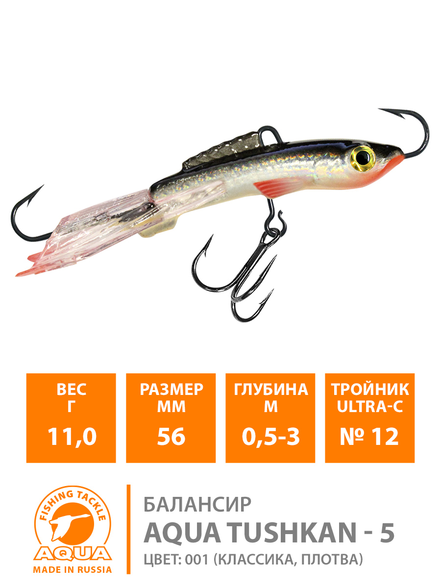 Балансир Aqua Tushkan-5 56мм 11гр цвет 001 (классика, плотва)