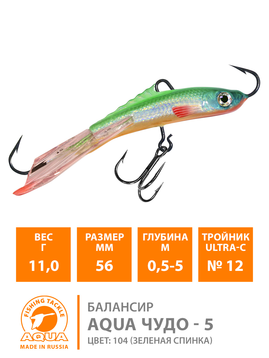 Балансир Aqua Чудо-5 56мм 11гр цвет 104 (зеленая спинка)