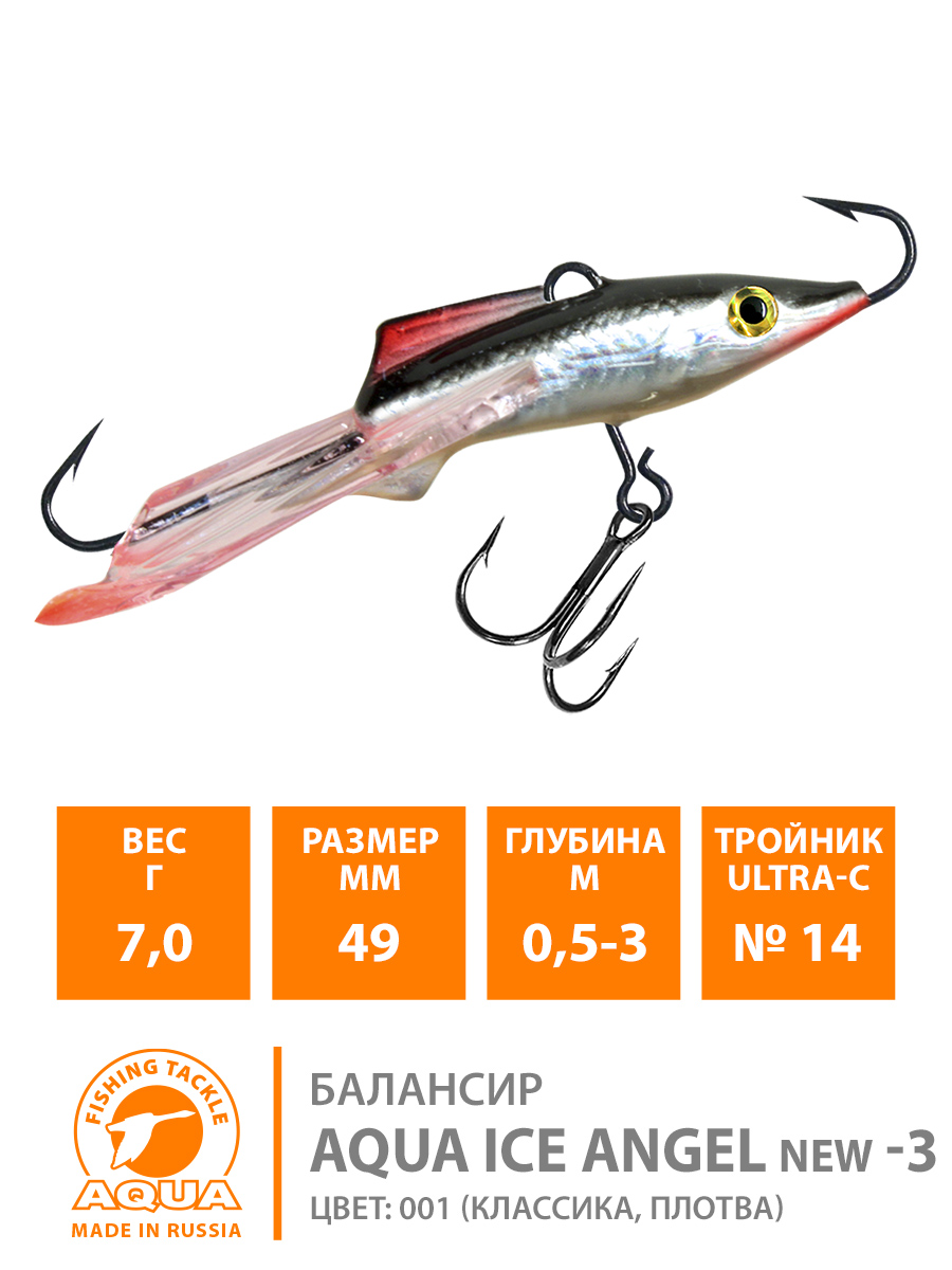 Балансир Aqua Ice Angel New-3 49мм 7гр цвет 001 (классика, плотва)