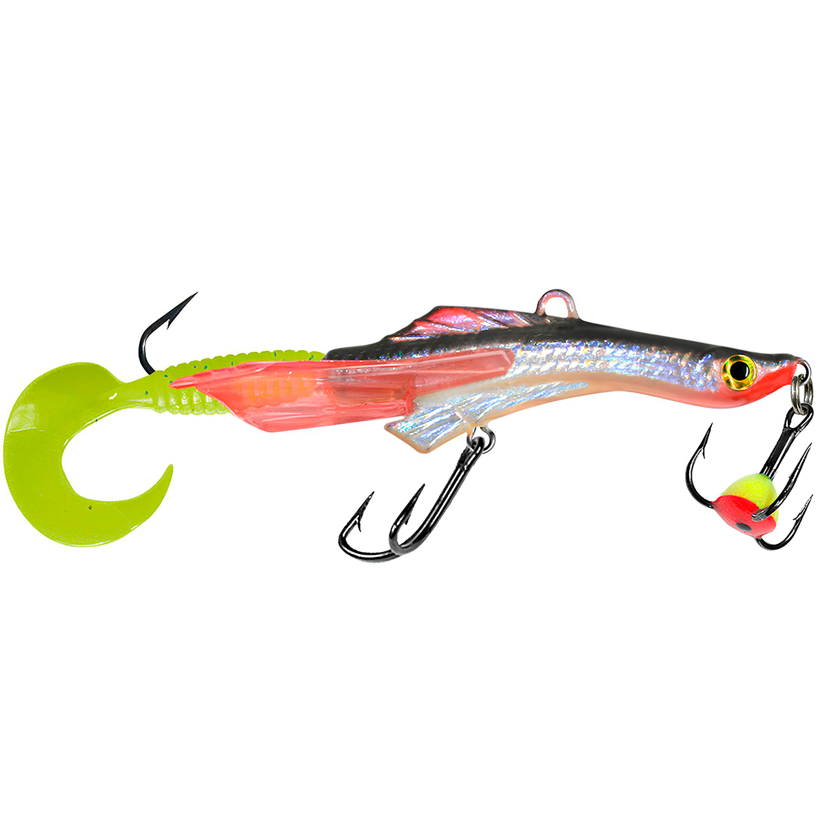 - В первом варианте балансир используется как отвесная блесна. При взмахе удильником вверх приманка отклоняется от вертикальной линии и начинает долгое движение до момента остановки, как говорят рыбаки «уходит от лунки». После полной остановки «Тритона», необходимо несколько раз «потрясти удильником», что создает у хищника иллюзию кормящегося малька. Тройник с фосфорной каплей повешенный за носовую петлю имитирует икринку, личинку или рачка, которого малек раскопал в отложении донного грунта.