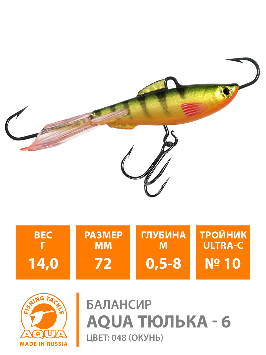 Балансир Aqua Тюлька-6 72мм 14гр цвет 048 (окунь)