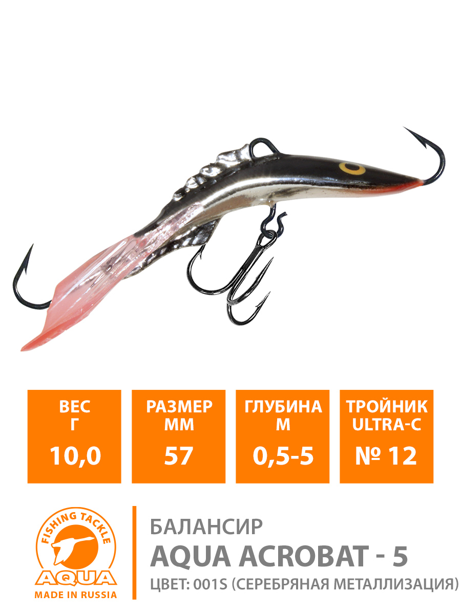 Балансир Aqua Acrobat-5 57мм 10гр цвет 001S (серебряная металлизация)
