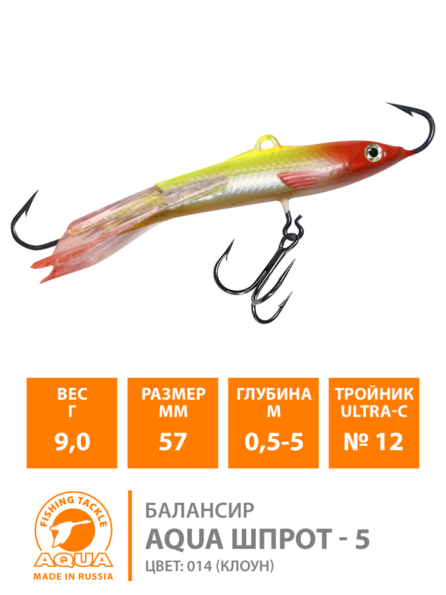 Балансир Aqua Шпрот-5 57мм 9гр цвет 014 (клоун)