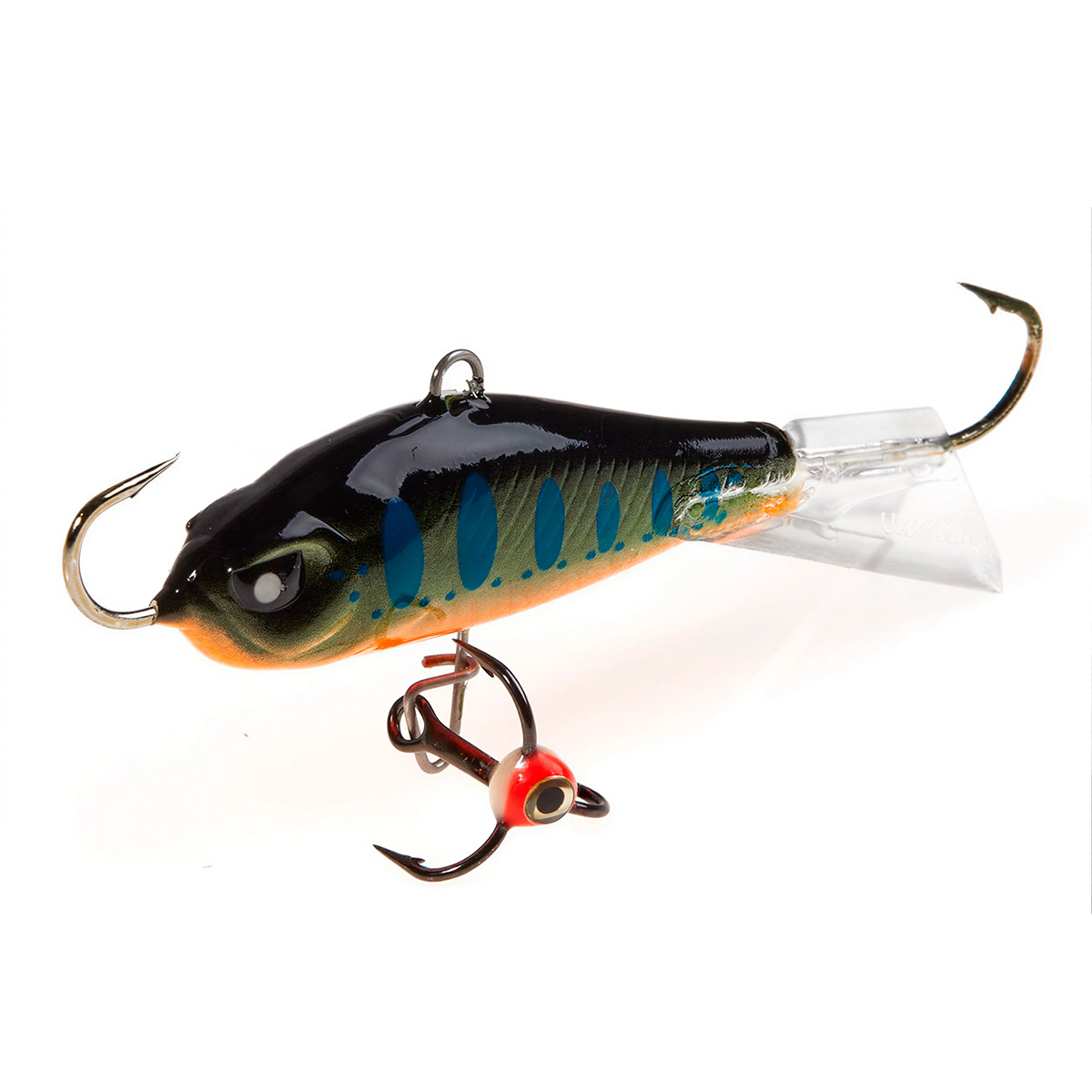 Хвостовое оперение может быть красным или прозрачным, изготовлено из морозостойкого пластика и приклеено к телу приманки суперпрочным клеем. Агрессивный самурайский взгляд, придает балансирам BALTIC узнаваемость среди приманок Lucky John, а их крупные глаза окончательно снимают все сомнения у хищной рыбы, перед атакой на беспечно плавающего толстячка.