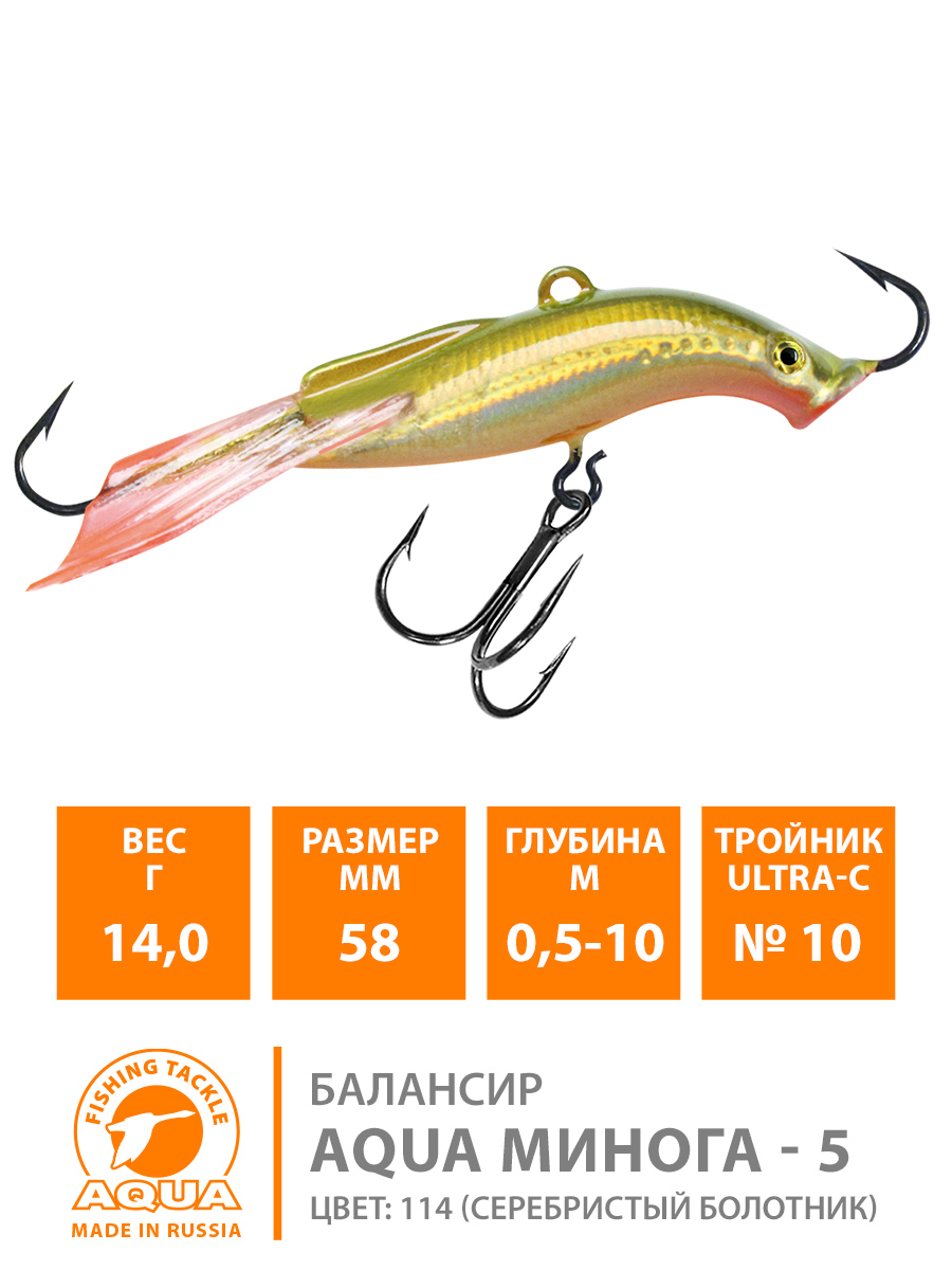Балансир Aqua Минога-5 58мм 14гр цвет 114 (серебристый болотник)