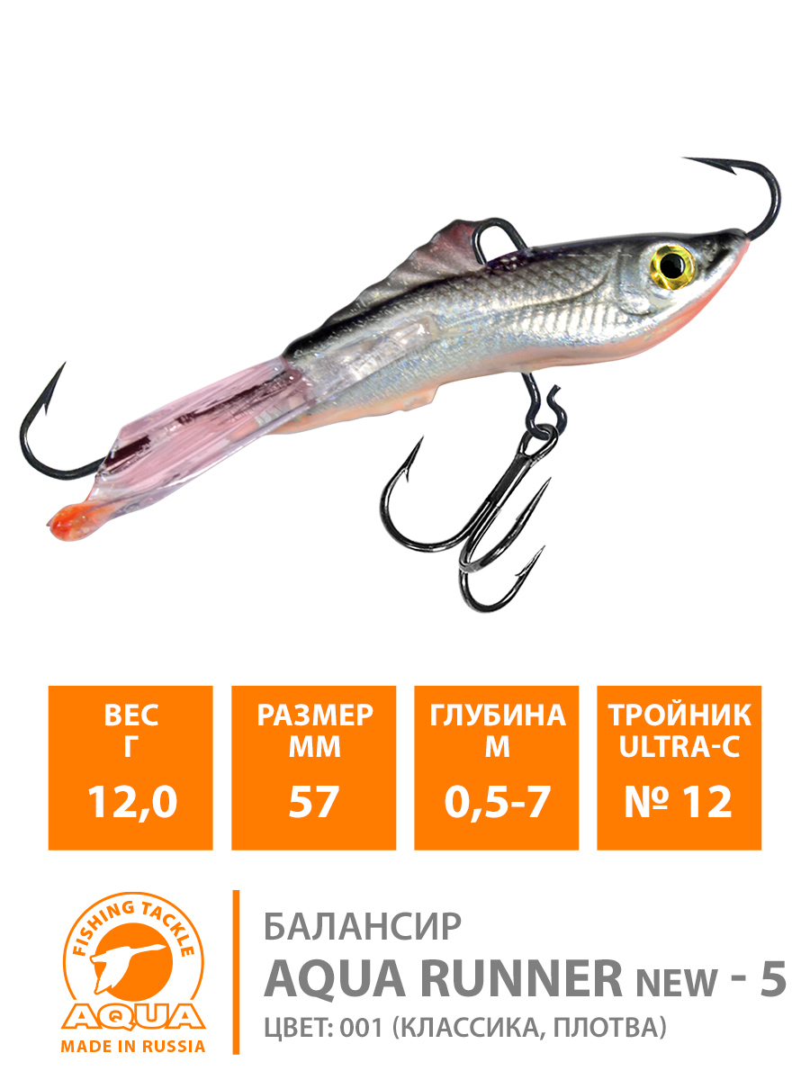 Балансир Aqua Runner New-5 57мм 12гр цвет 001 (классика, плотва)