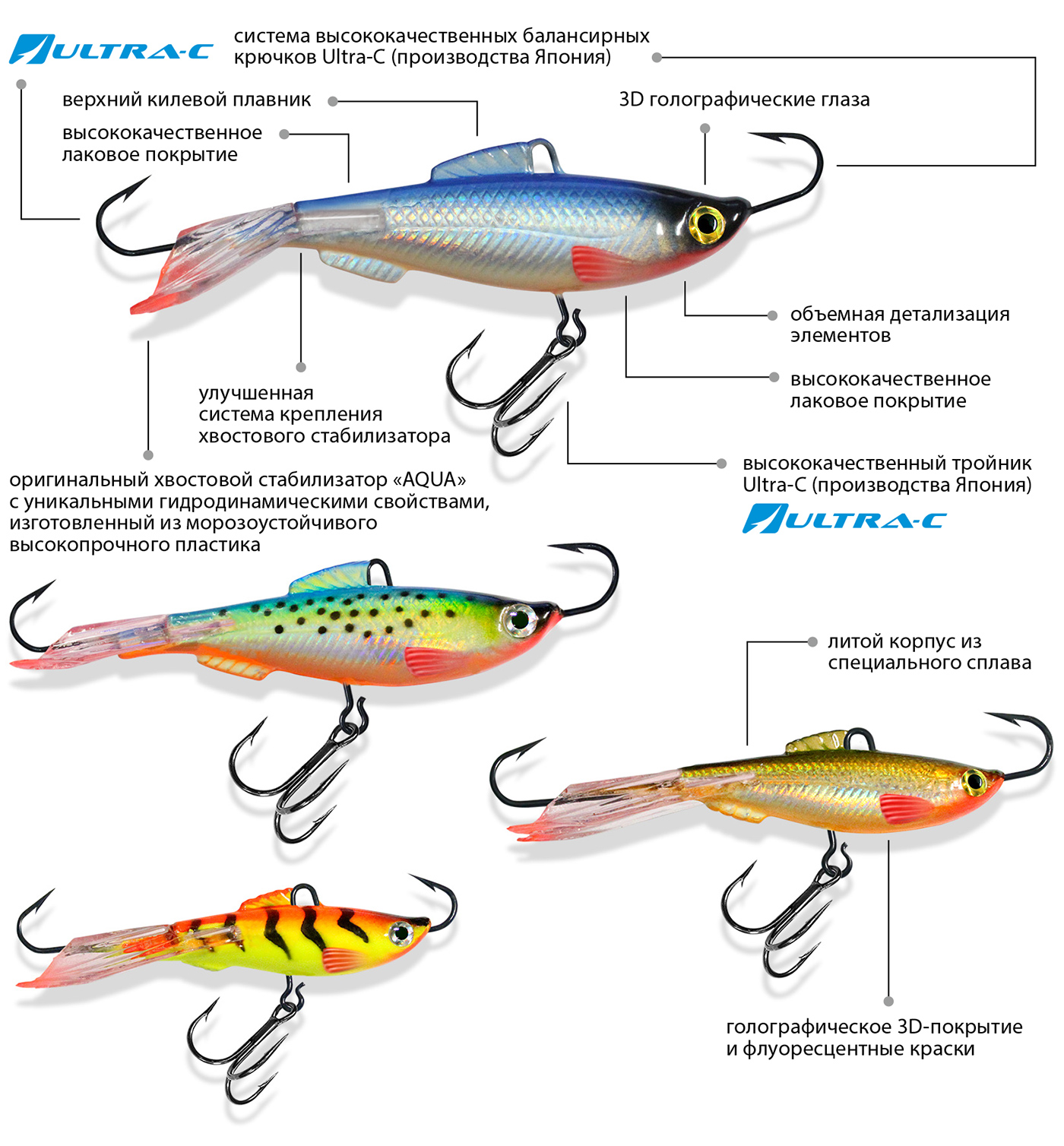 Тело приманки покрыто светоотражающей голографической фольгой, что делает ее более заметной на больших глубинах, при недостатке солнечного света. Специально рассчитанная балансировка тела, и уникальная форма хвостика - стабилизатора делают Тюльку дальноходной и неотразимой приманкой.