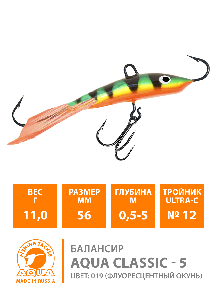 Балансир Aqua Classic-5 56мм 11гр цвет 019 (флуоресцентный окунь)