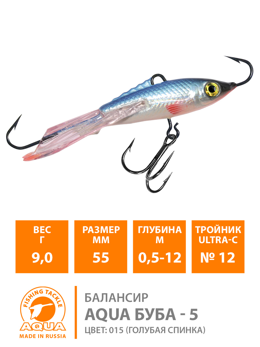 Балансир Aqua Буба-5 55мм 9гр цвет 015 (голубой серебристый)