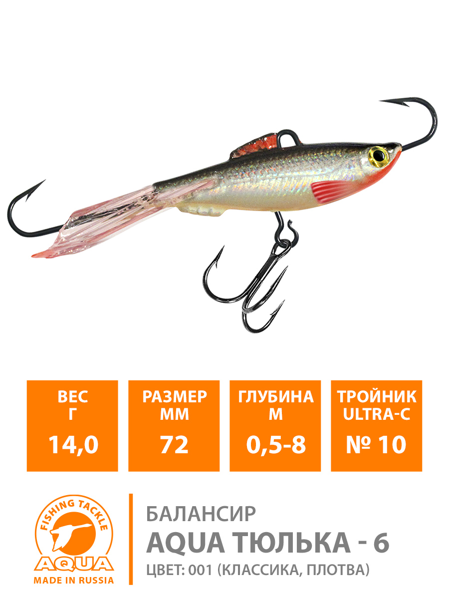 Балансир Aqua Тюлька-6 72мм 14гр цвет 001 (классика, плотва)