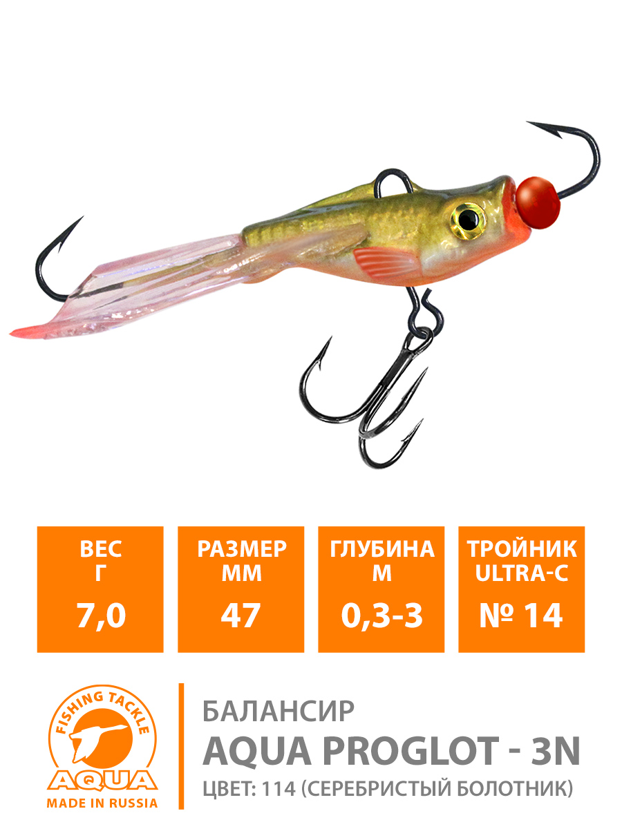 Балансир Aqua Proglot-3N 47мм 7гр цвет 114 (серебристый болотник)