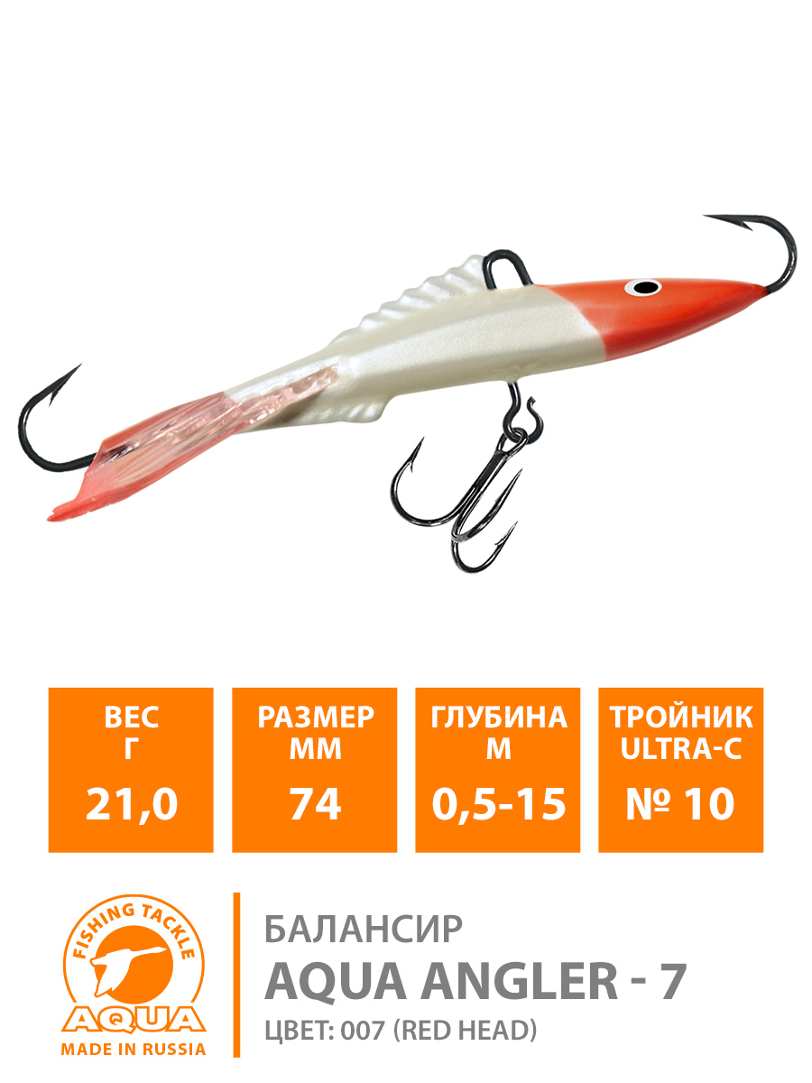 Балансир Aqua Angler-7 74мм 21гр цвет 007 (красная голова)