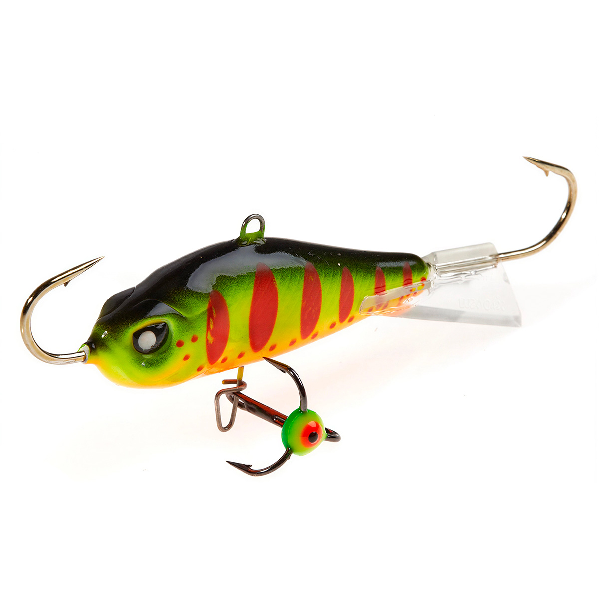 Хвостовое оперение балансира может быть красным или прозрачным, изготовлено из морозостойкого пластика и приклеено к телу приманки суперпрочным клеем.
