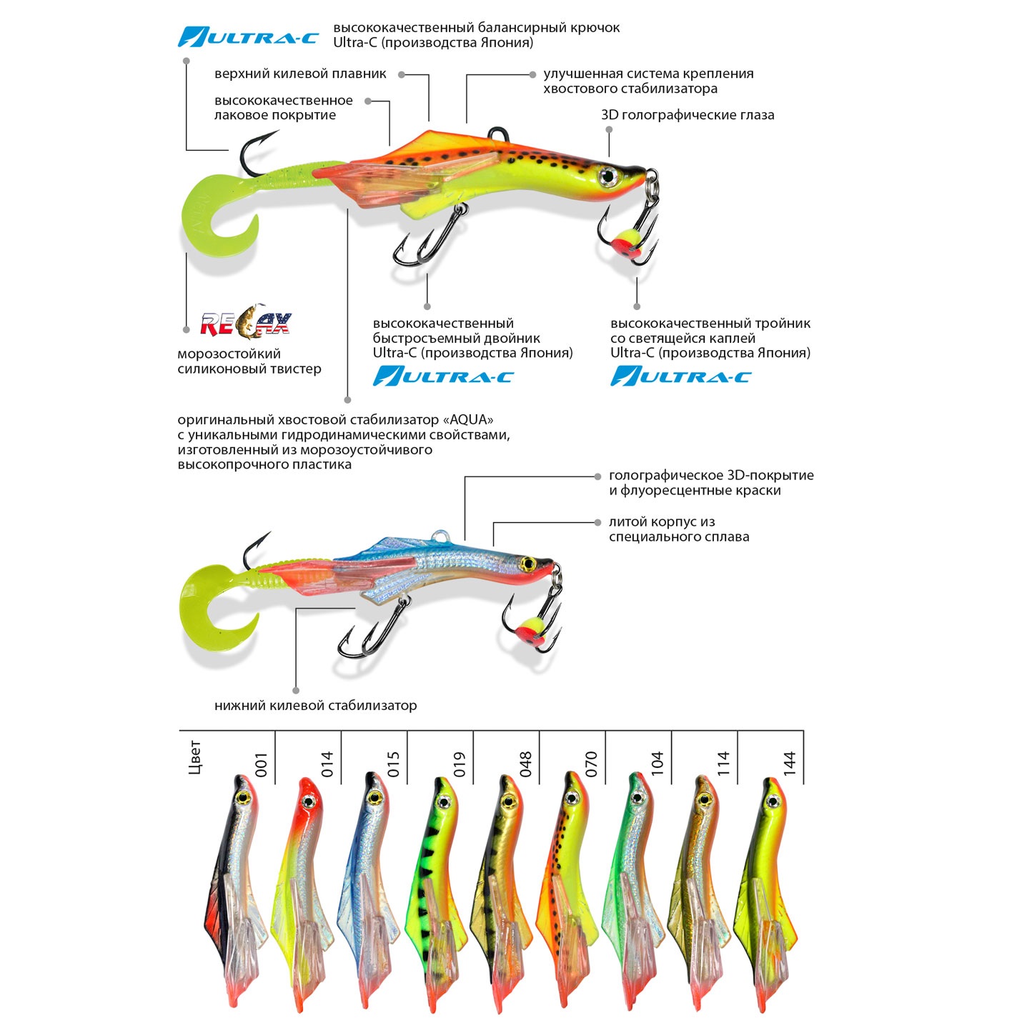 Балансир Aqua Triton-7 76мм 23гр цвет 048 (окунь) с твистером
