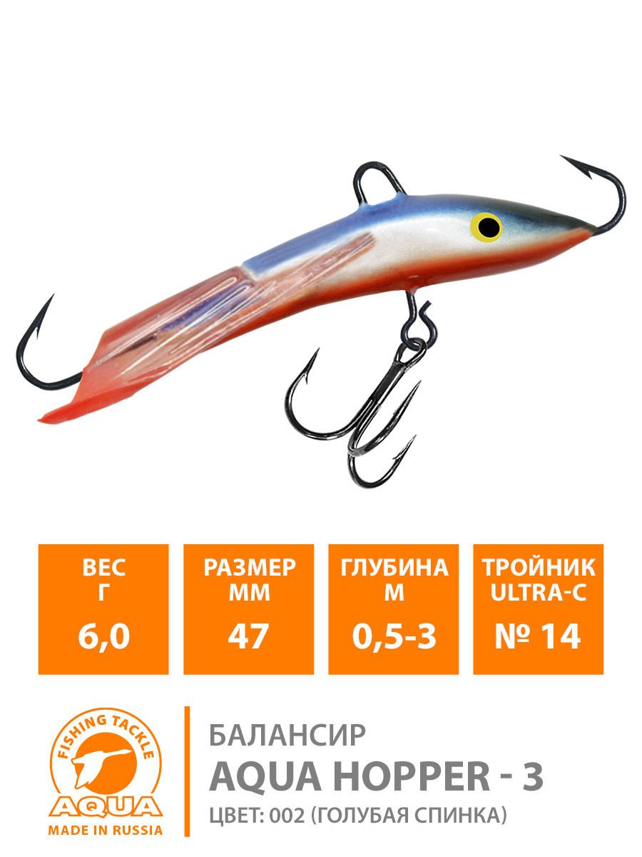 Балансир Aqua Hopper 47мм 6гр цвет 002 (голубая спинка)