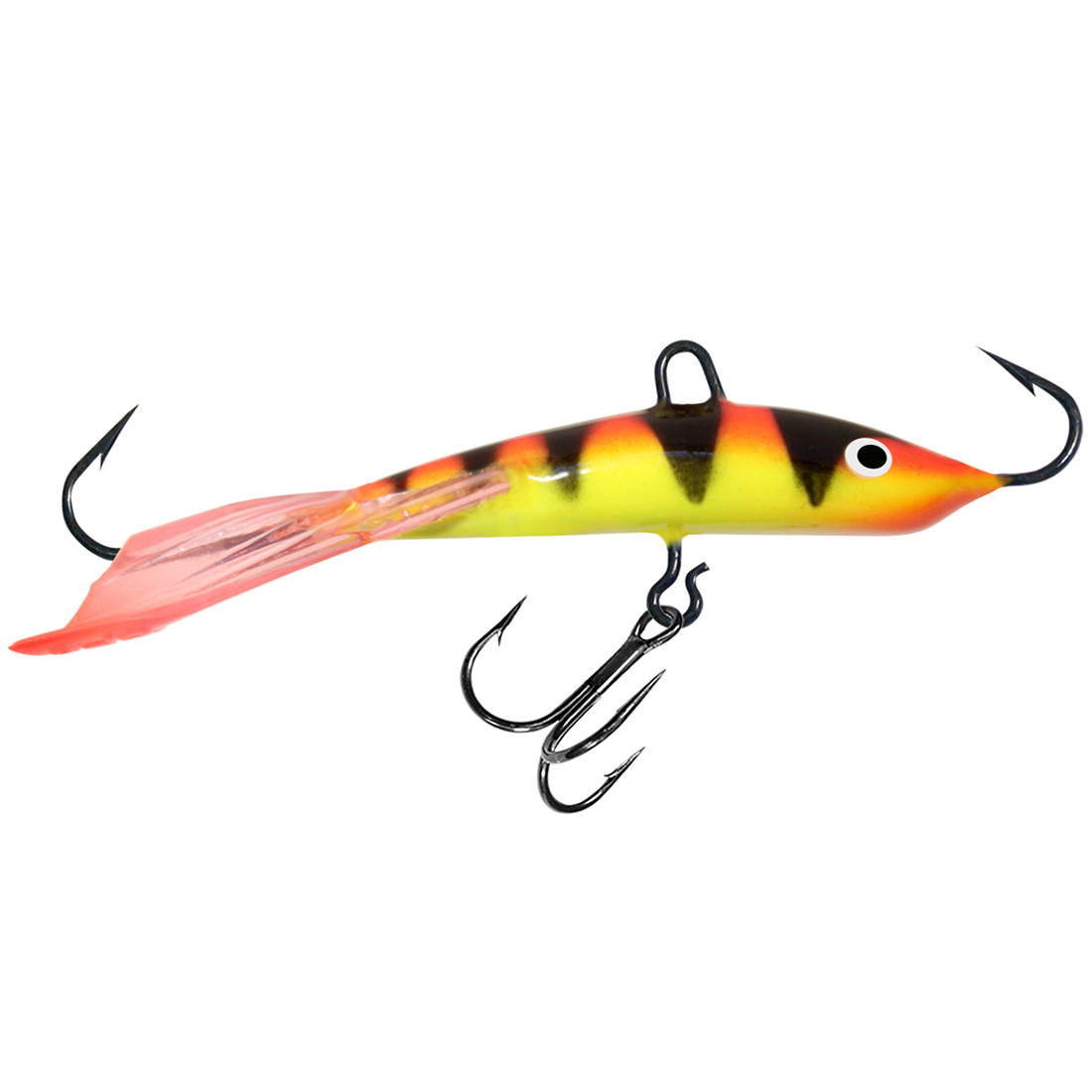 AQUA - единственная компания в мире выпускающая балансиры с голографическим покрытием, которое с максимальным эффектом отражает скудный свет, попадающий в подледное царство. Тройник, которым оснащена голографическая горизонталка, имеет трехцветную светящуюся каплю, имитирующую окуневый глаз и по традиции называется финским.