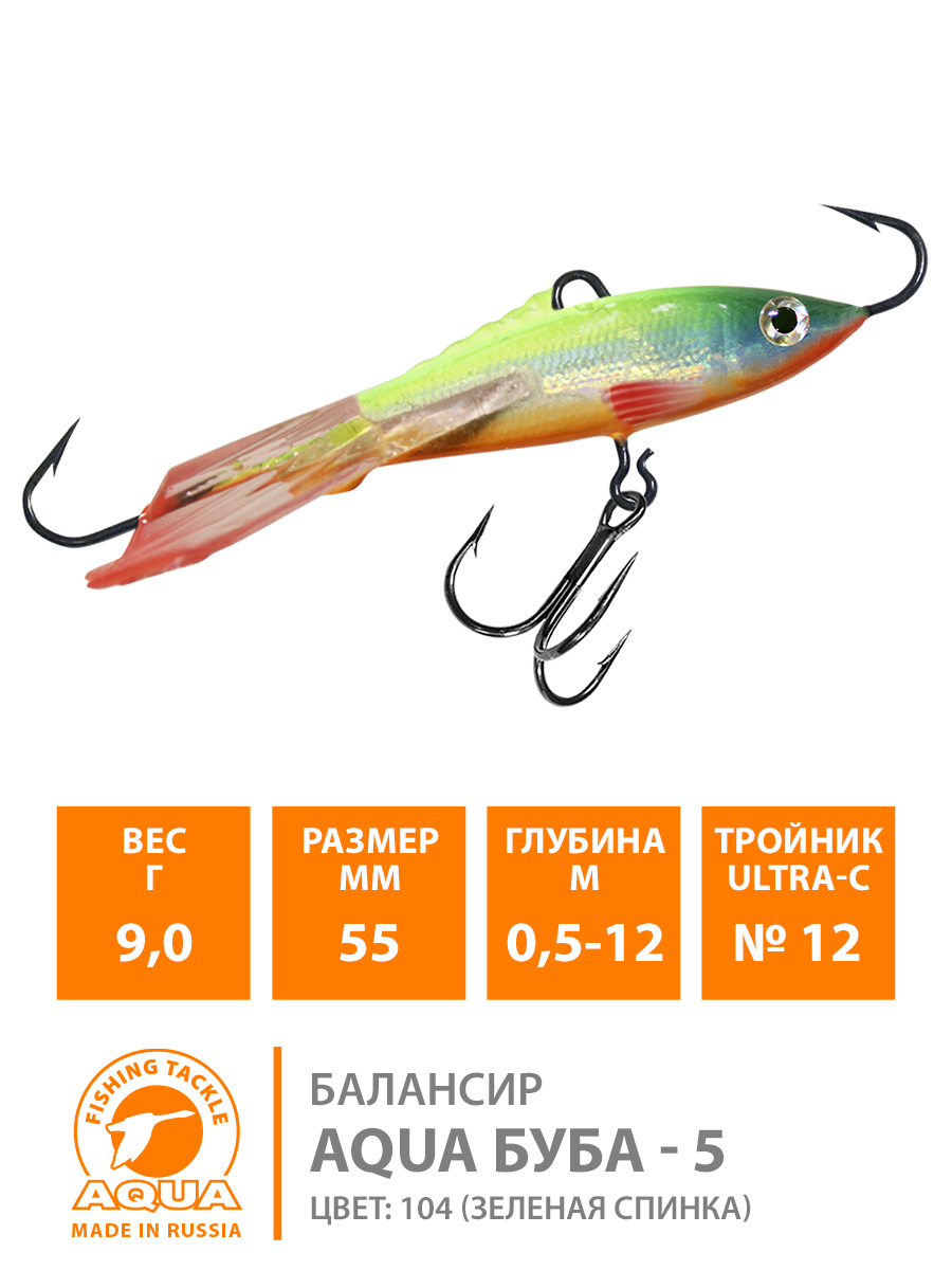 Балансир Aqua Буба-5 55мм 9гр цвет 104 (зеленая спинка, оранж. брюшко)