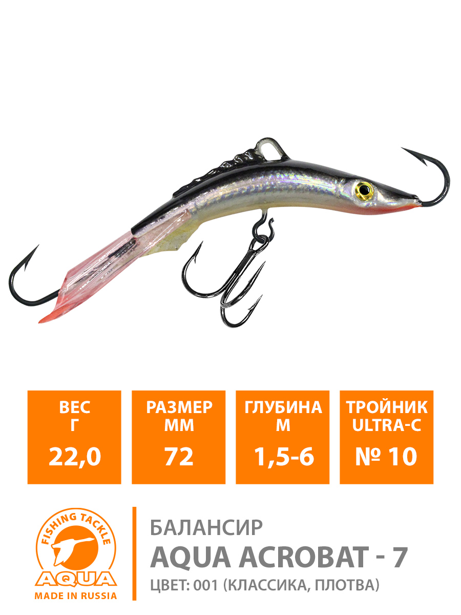 Балансир Aqua Acrobat-7 72мм 22гр цвет 001 (классика, плотва)