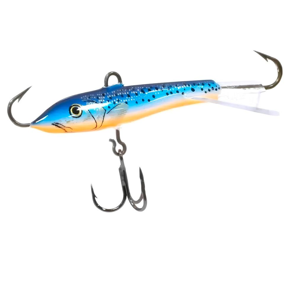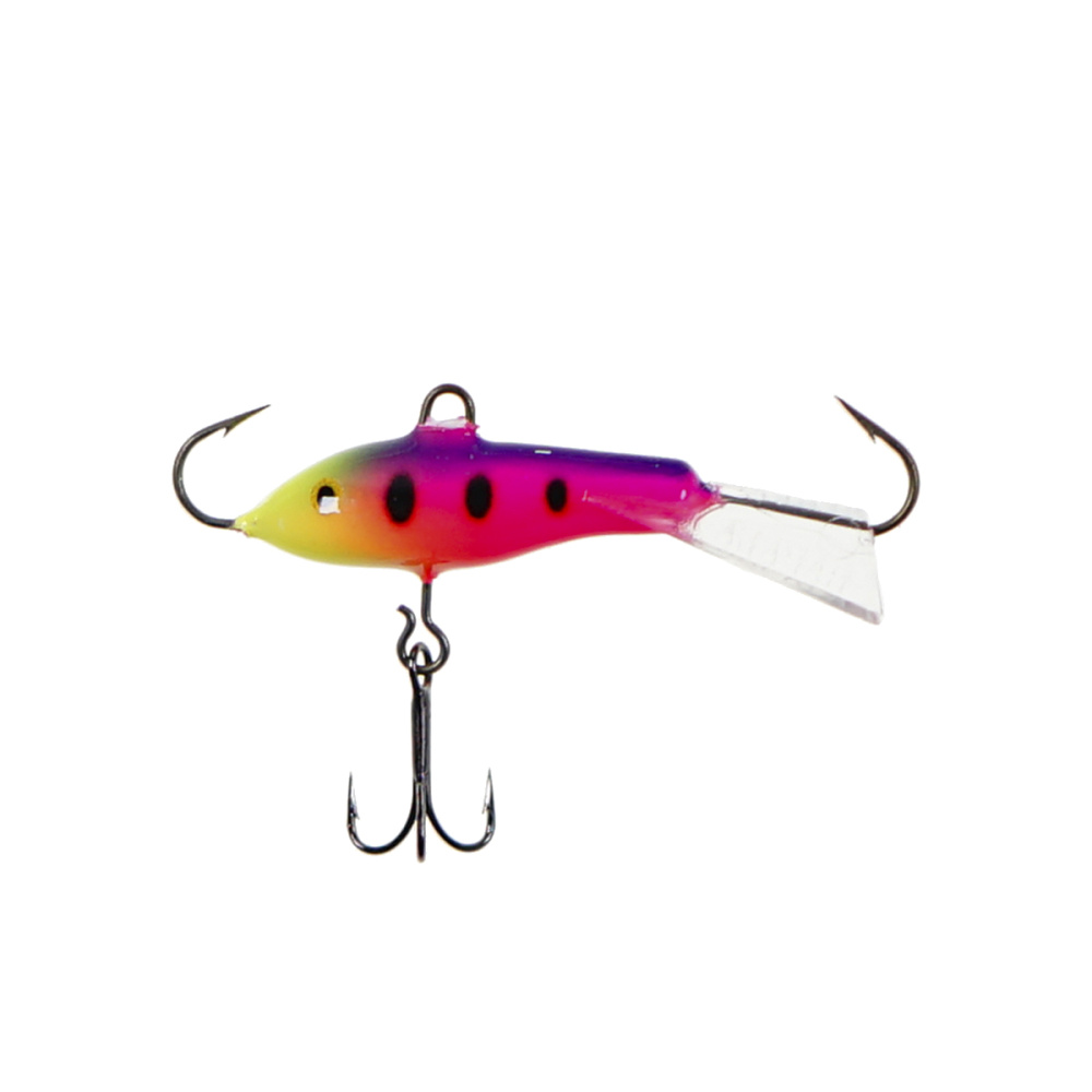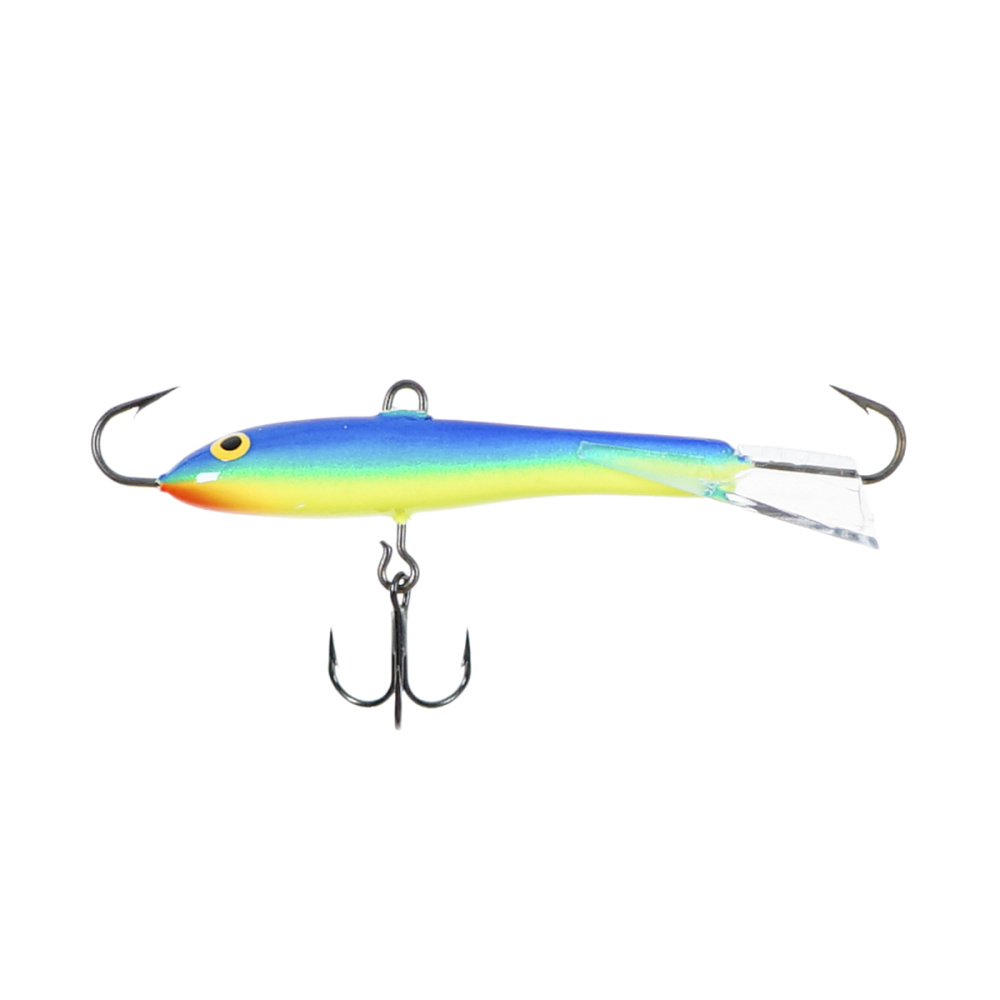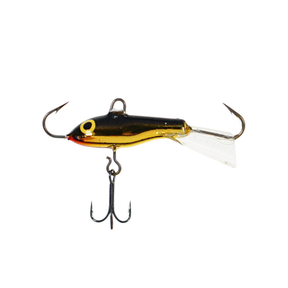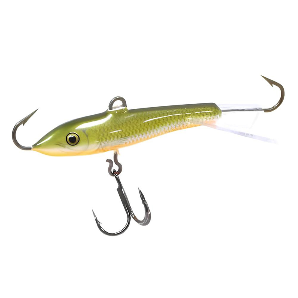 Оснащение балансира включает два надежно закрепленных крючка – один расположен впереди, второй сзади, плюс дополнительный качественный тройничок. Такая конструкция значительно повышает шансы успешной подсечки, что критически важно, когда рыба ведет себя пассивно и слабо интересуется насадкой.