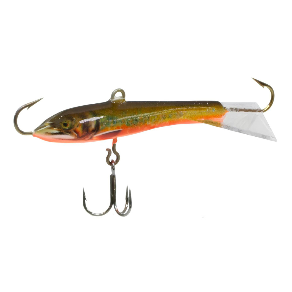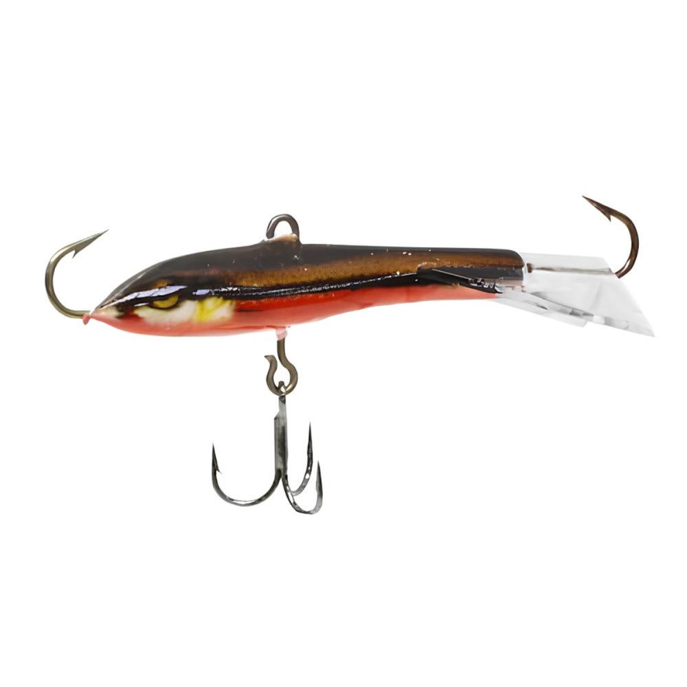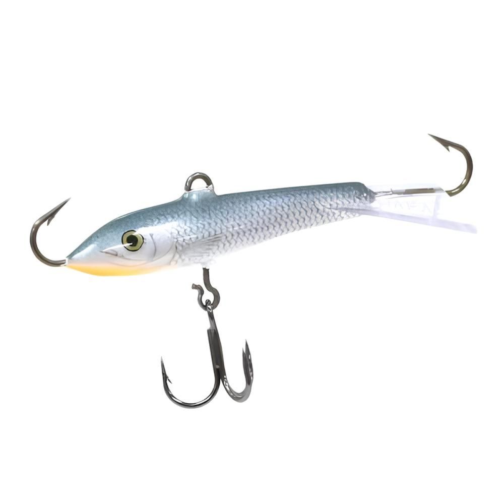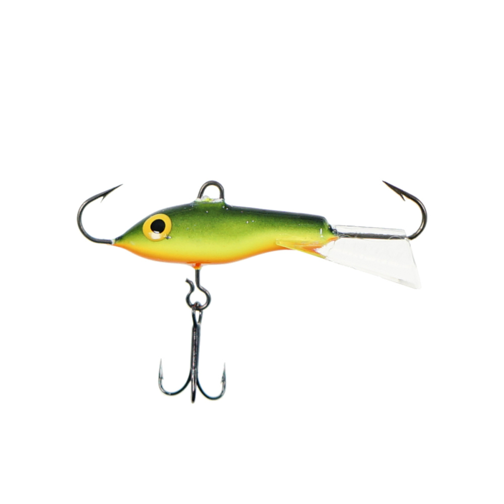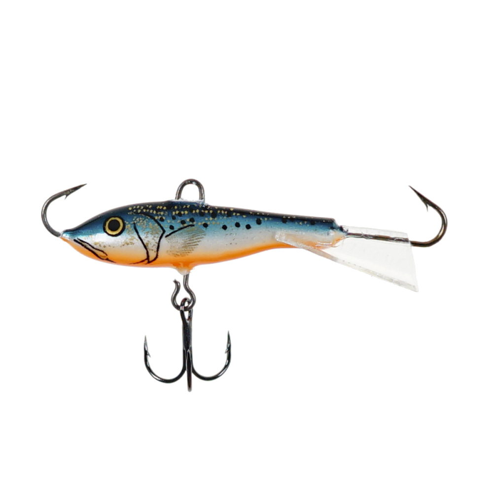 Оснащение балансира включает два надежно закрепленных крючка – один расположен впереди, второй сзади, плюс дополнительный качественный тройничок. Такая конструкция значительно повышает шансы успешной подсечки, что критически важно, когда рыба ведет себя пассивно и слабо интересуется насадкой.