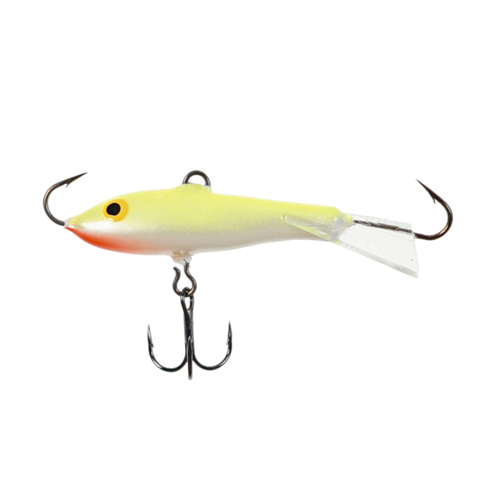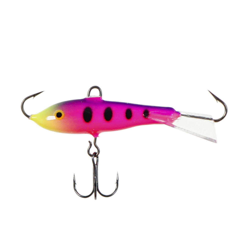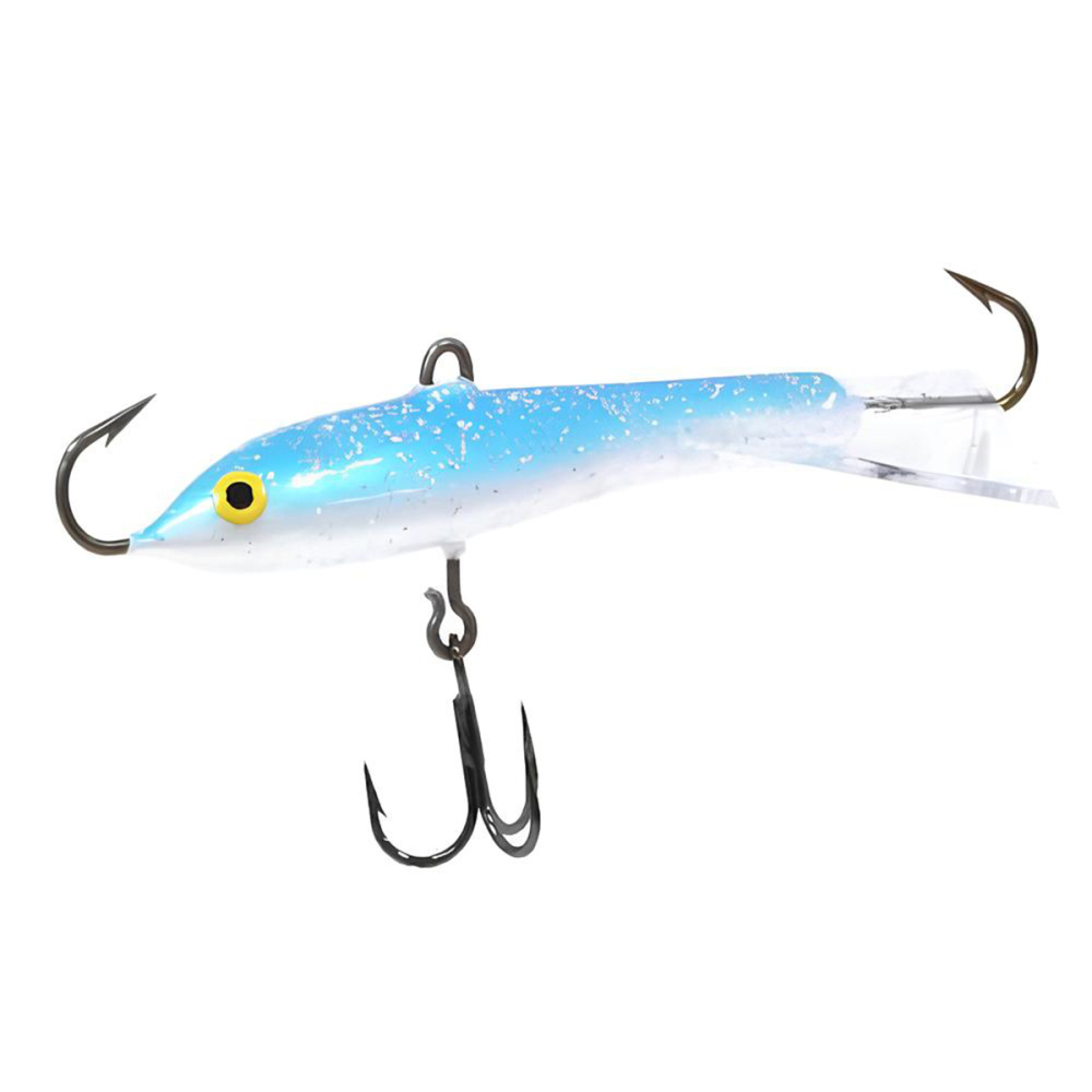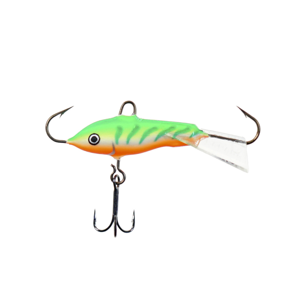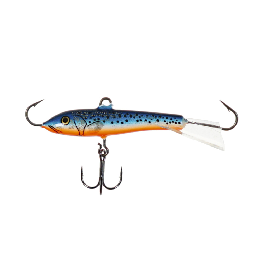 Оснащение балансира включает два надежно закрепленных крючка – один расположен впереди, второй сзади, плюс дополнительный качественный тройничок. Такая конструкция значительно повышает шансы успешной подсечки, что критически важно, когда рыба ведет себя пассивно и слабо интересуется насадкой.
