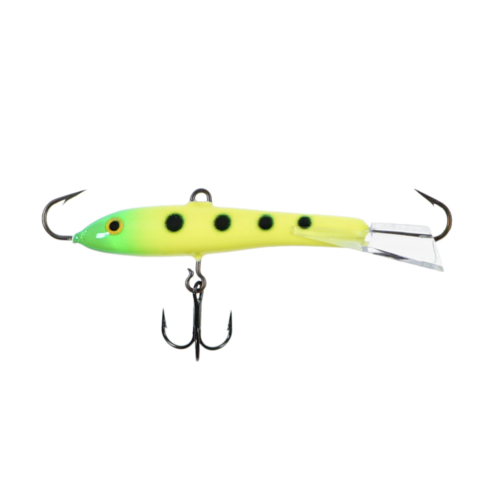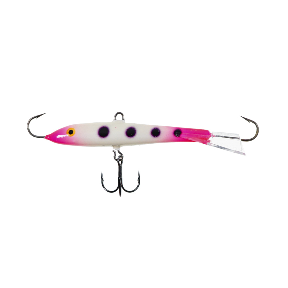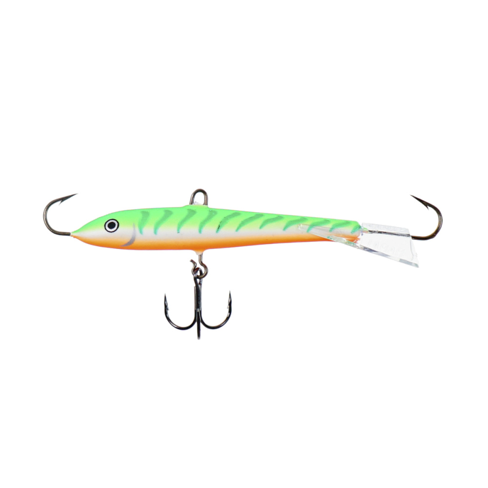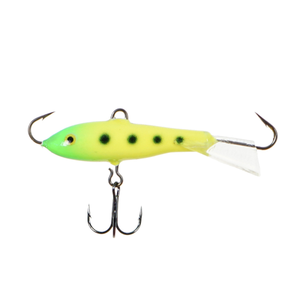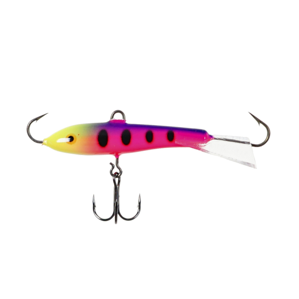 Оснащение балансира включает два надежно закрепленных крючка – один расположен впереди, второй сзади, плюс дополнительный качественный тройничок. Такая конструкция значительно повышает шансы успешной подсечки, что критически важно, когда рыба ведет себя пассивно и слабо интересуется насадкой.