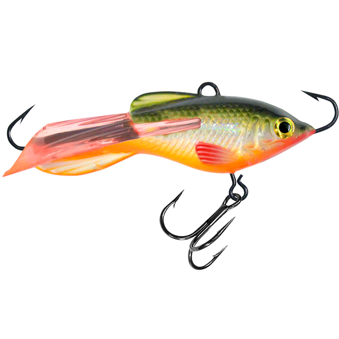 Толстяк весит 19g при длине 5cm, что позволяет облавливать им глубины от 1,5m до 10m. Благодаря особому подгибу кончиков хвостового оперения эта модель обладает экспрессивной, выразительной игрой.