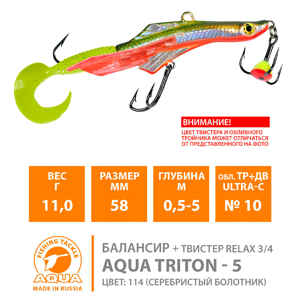 Балансир Aqua Triton-5 58мм 11гр цвет 114 (серебристый болотник)