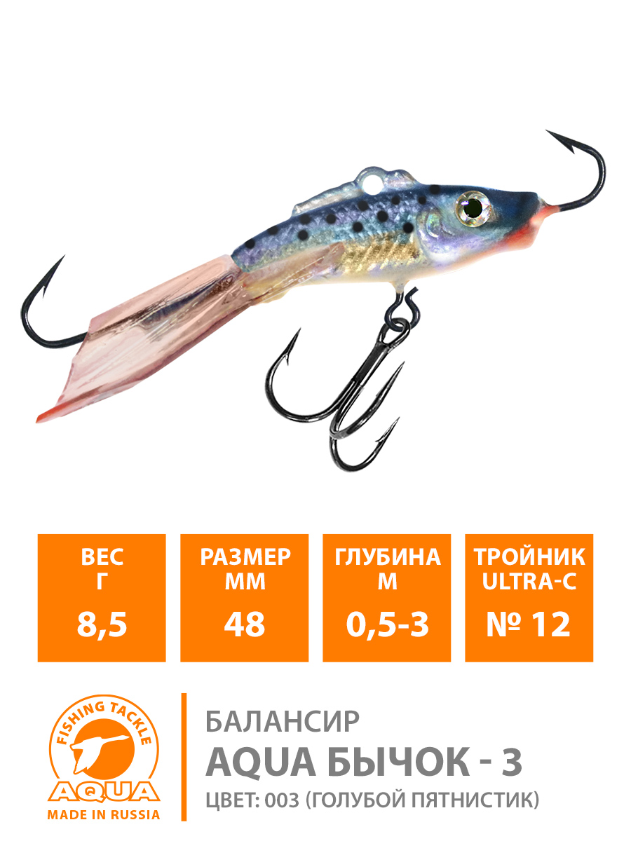 Балансир Aqua Бычок-3 48мм 9гр цвет 003 (голубой пятнистик)