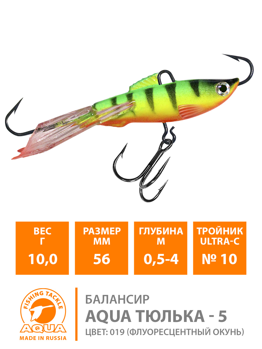 Балансир Aqua Тюлька-5 56мм 10гр цвет 019 (флуоресцентный окунь)