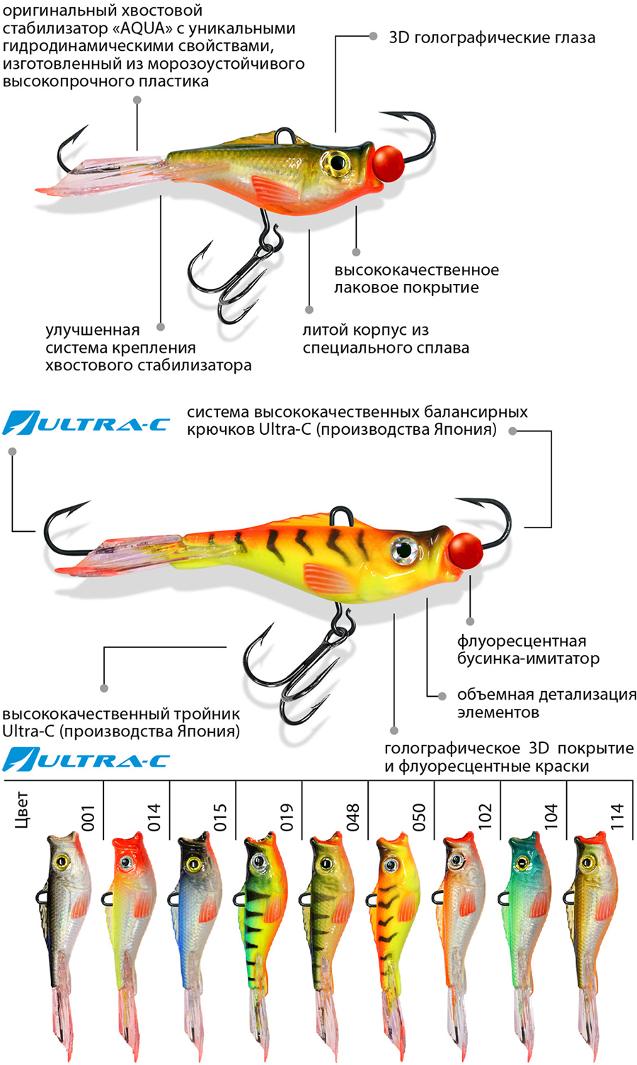Правомерность данного предположения подтвердили полевые испытания PROGLOT зимой 2007-2008 гг. Он исключительно эффективно привлекает рыбу вызывая поклевку буквально на первой же петле. Нужно отметить, что 90% поклевок приходится на носовой одинарный крючок, снабженный бусинко