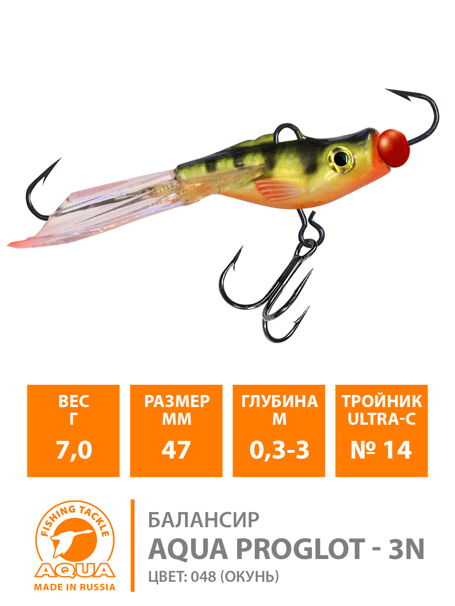 Балансир Aqua Proglot-3N 47мм 7гр цвет 048 (окунь)