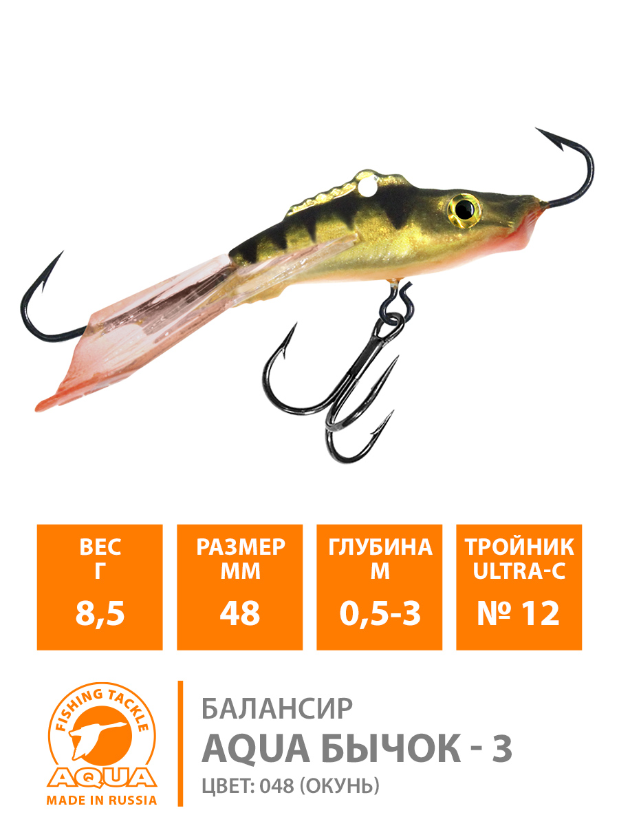 Балансир Aqua Бычок-3 48мм 9гр цвет 048 (окунь)