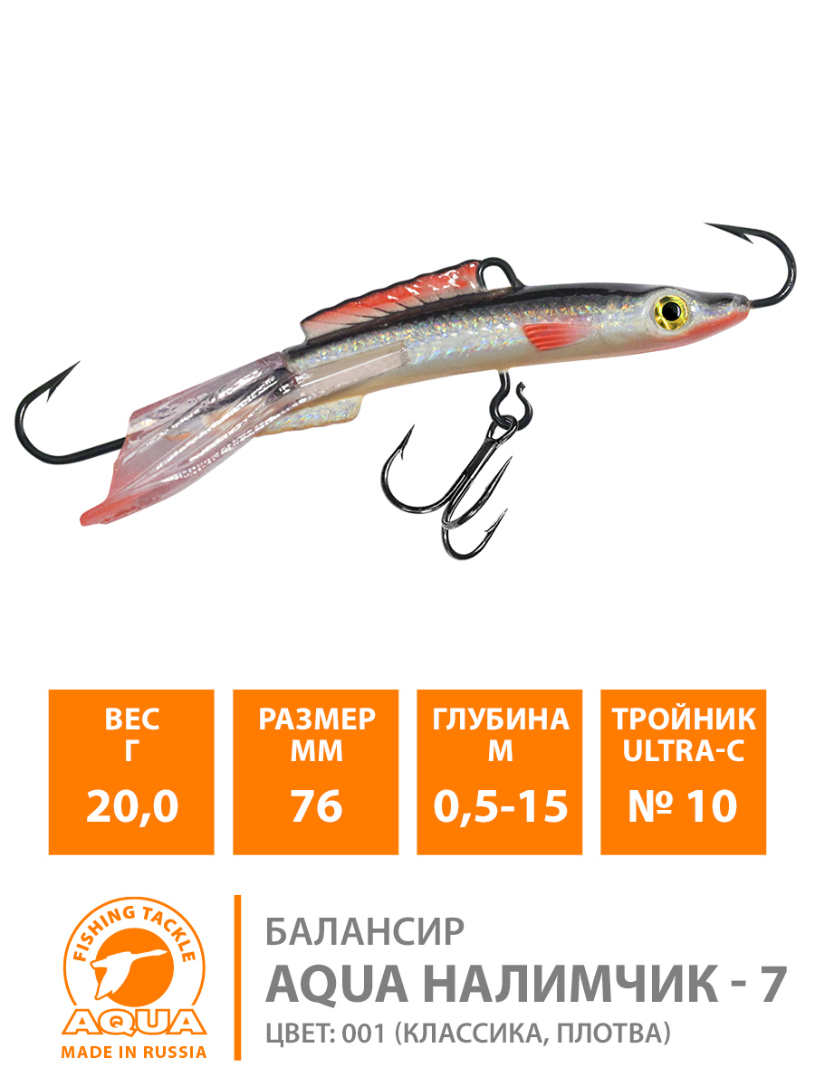 Балансир Aqua Налимчик-7 76мм 20гр цвет 001 (классика, плотва)