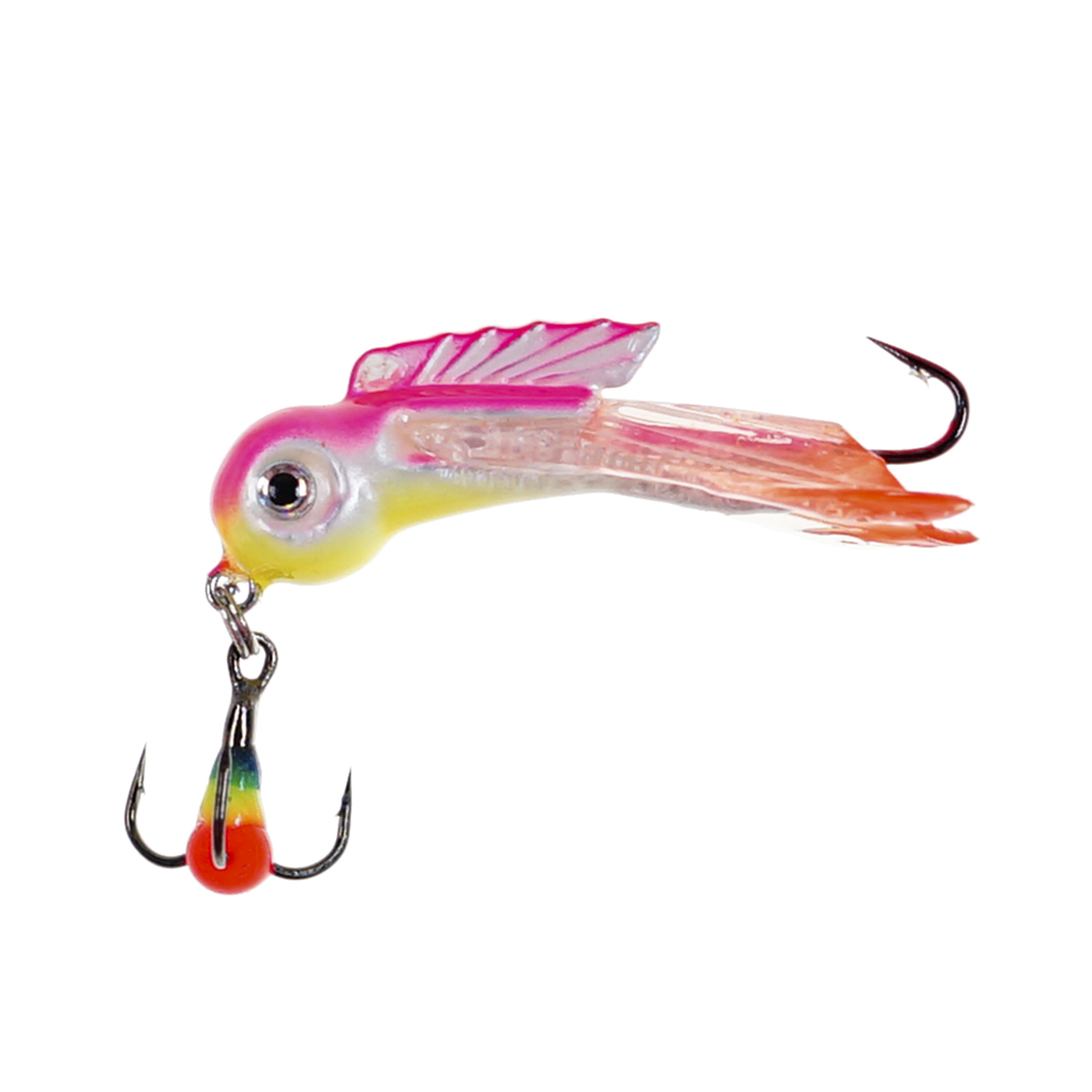 Модель оснащена системой качественного японского тройника с яркой фосфорной каплей, придающей дополнительную привлекательность приманке. Верхний килевой плавник стабилизирует игру, предотвращая отклонения от заданной траектории. Игра приманкой проста: её опускают на дно, делают небольшие подъемы и паузы, создавая эффект активно двигающейся добычи.