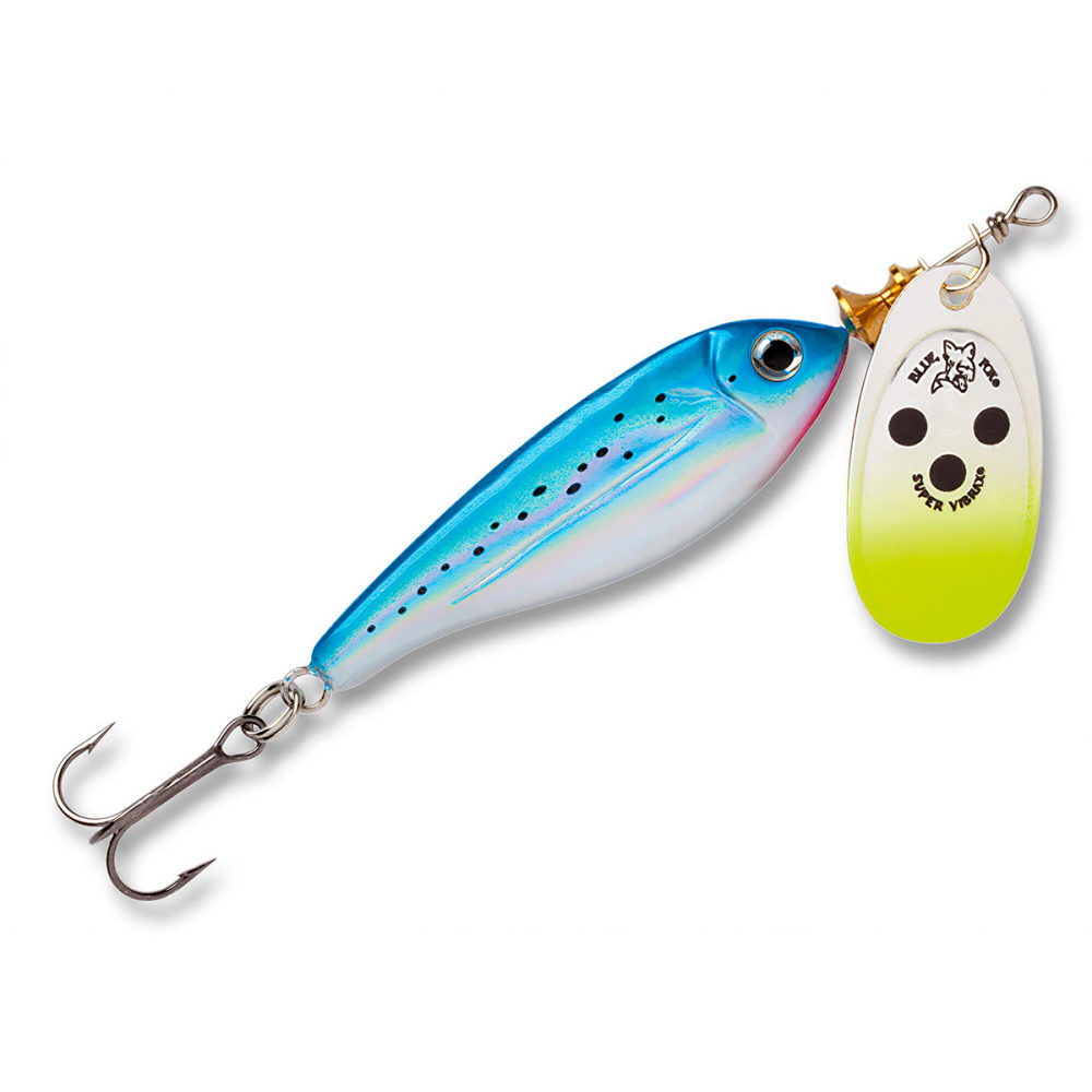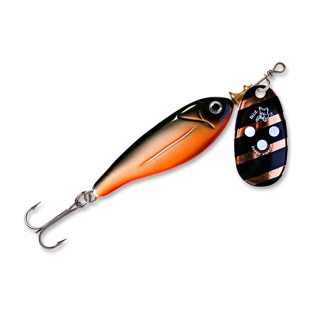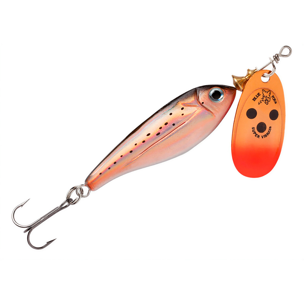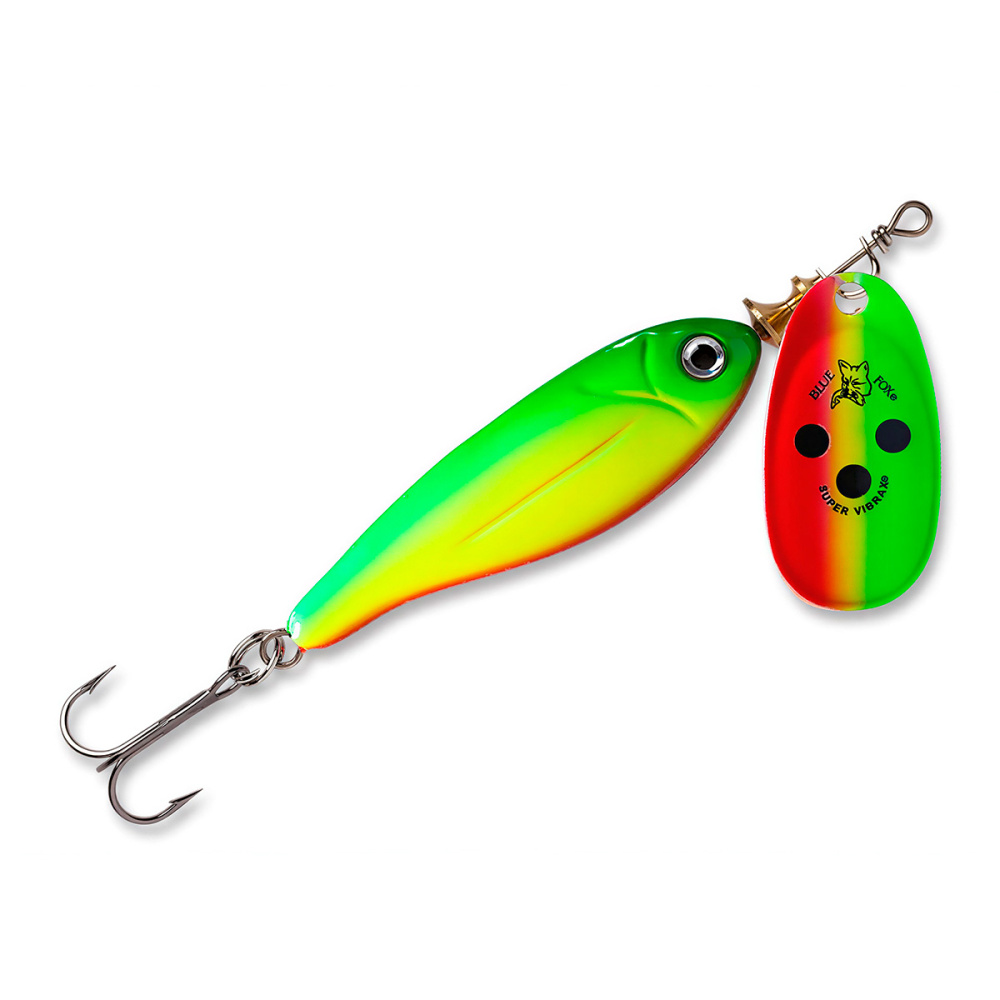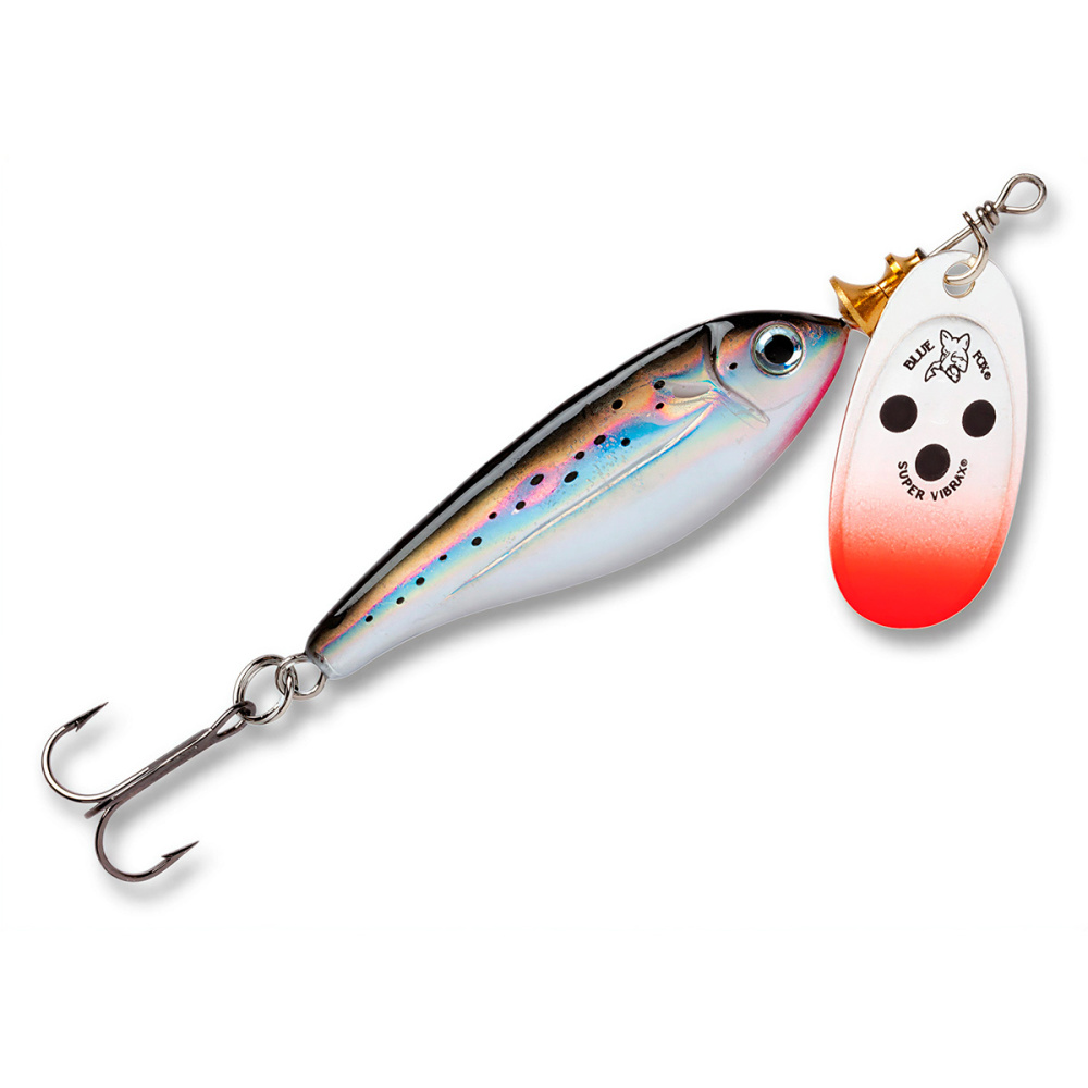 Особое устройство сердечника предохраняет тройник от захлестывания на леску при забросе и ощутимо уменьшает перекручивание лески во время проводки. Блесна Blue Fox Minnow Super Vibrax смонтирована на нержавеющем проволочном каркасе и снабжена острейшими тройниками из высокоуглеродистой стали.