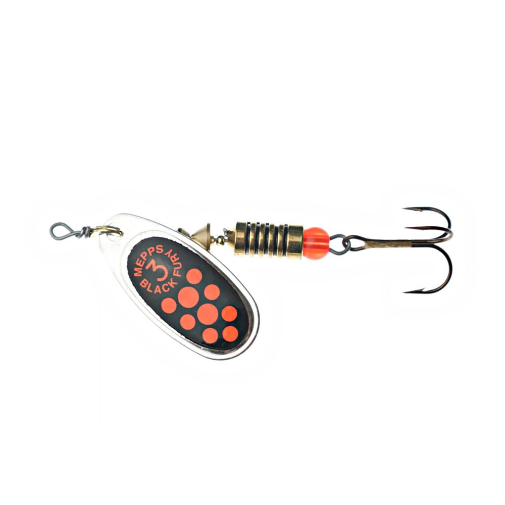 Блесна вращающаяся Mepps Black Fury Orange/Black №3 6,5гр черная, черный фон, оранжевые точки