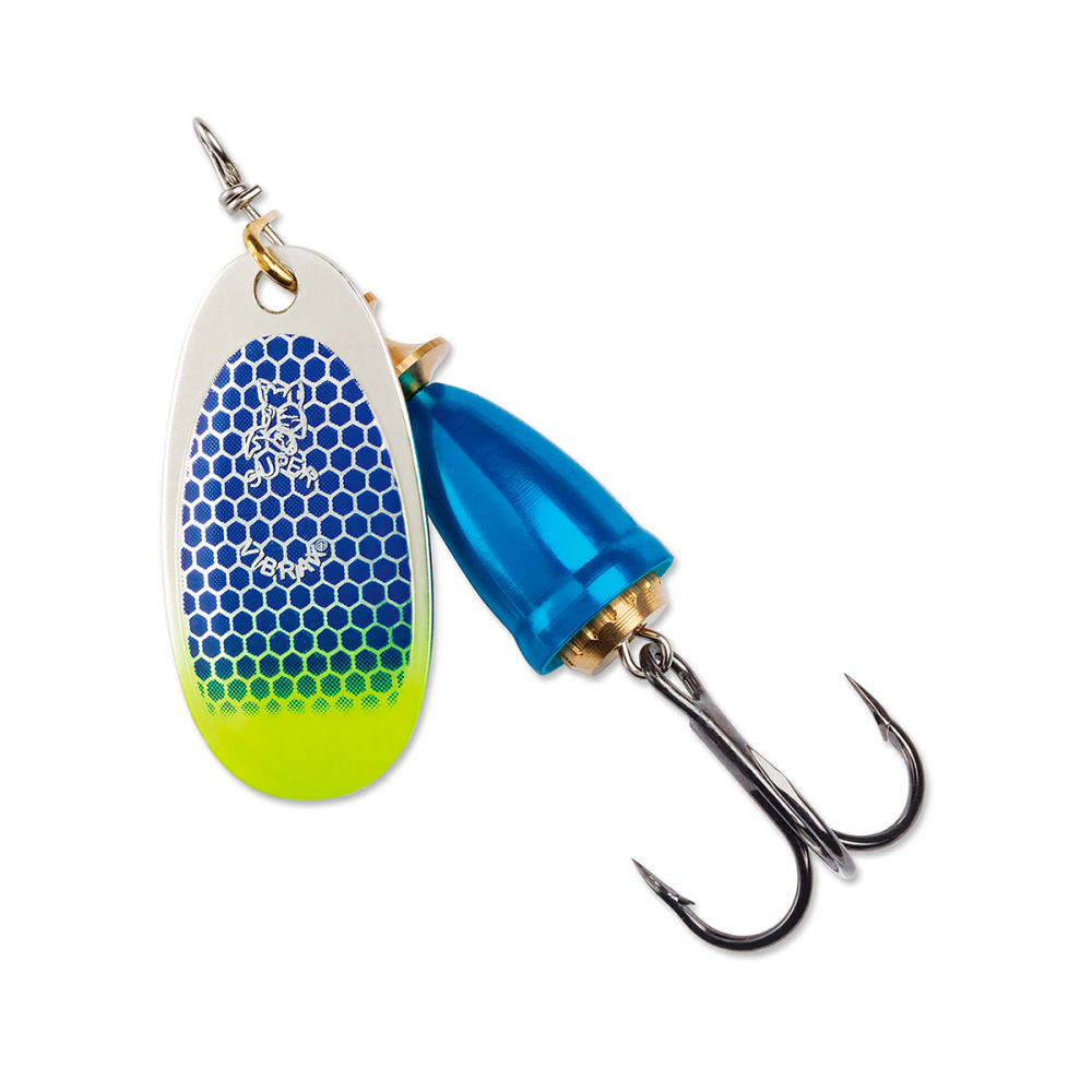 Закрепляя удачу очень популярной серии Vibrax, блесна Blue Fox Vibrax UV, поставила на поток успех компании, заставив сиять новыми красками, полюбившиеся спиннингистам и подводным хищникам, вертушки. Разнообразные варианты окраски флуоресцентных цветов отражают ультрафиолет и яркими бликами привлекают рыбу даже на дне, при слабом освещении, куда лучи видимого диапазона не доходят. Мощный литой сердечник, конусообразной формы, предотвращает залипание лепестка, включая его в работу в начале проводки. Латунь сердечника и лепестка сопровождает проводку вертушки, приманивающим хищника, звоном.