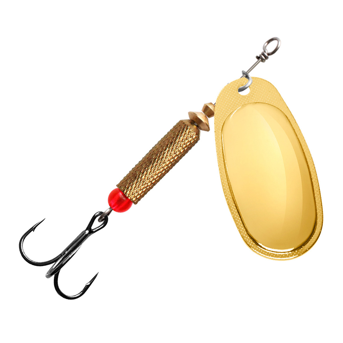 - полированного лепестка из цветного металла классической формы с боковой чеканкой, который делает игру приманки максимально стабильной – без «залипаний» в момент проводки. Выпуклая форма лепестка работает как сферическое зеркало, позволяя отражать любой лучик света, с какой бы стороны он не упал на блесну, что особенно полезно при ловле на глубине или в мутной, плохо освещенной воде.