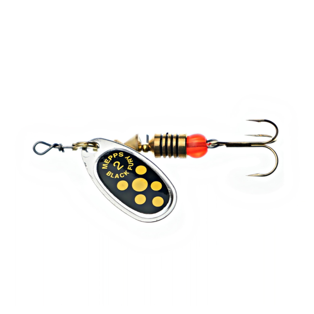 Блесна вращающаяся Mepps Black Fury Jaune/Black №2 4,5гр черная, черный фон, желтые точки