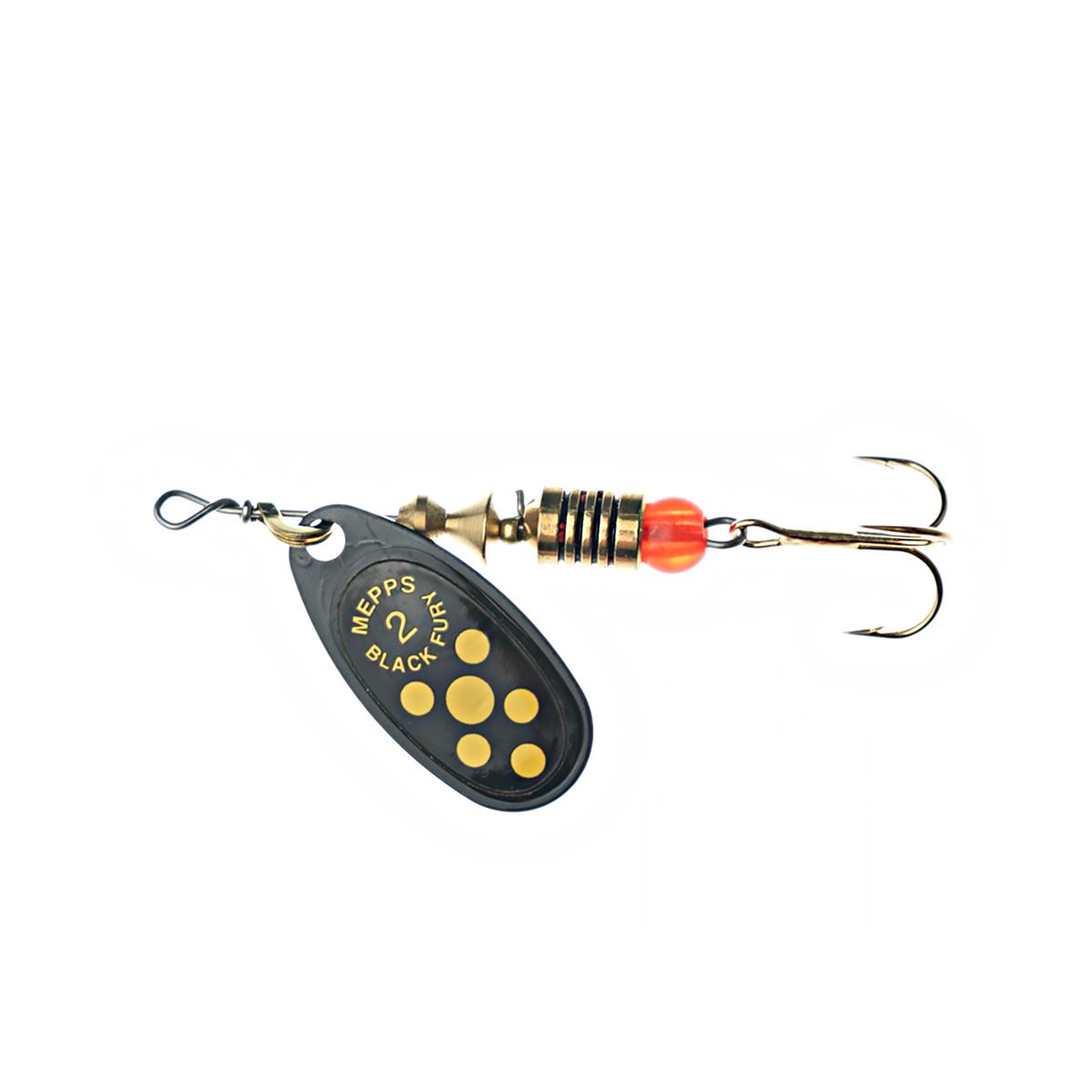 Блесна вращающаяся Mepps Black Fury Jaune/Black №2 4,5гр черная, черный фон, желтые точки