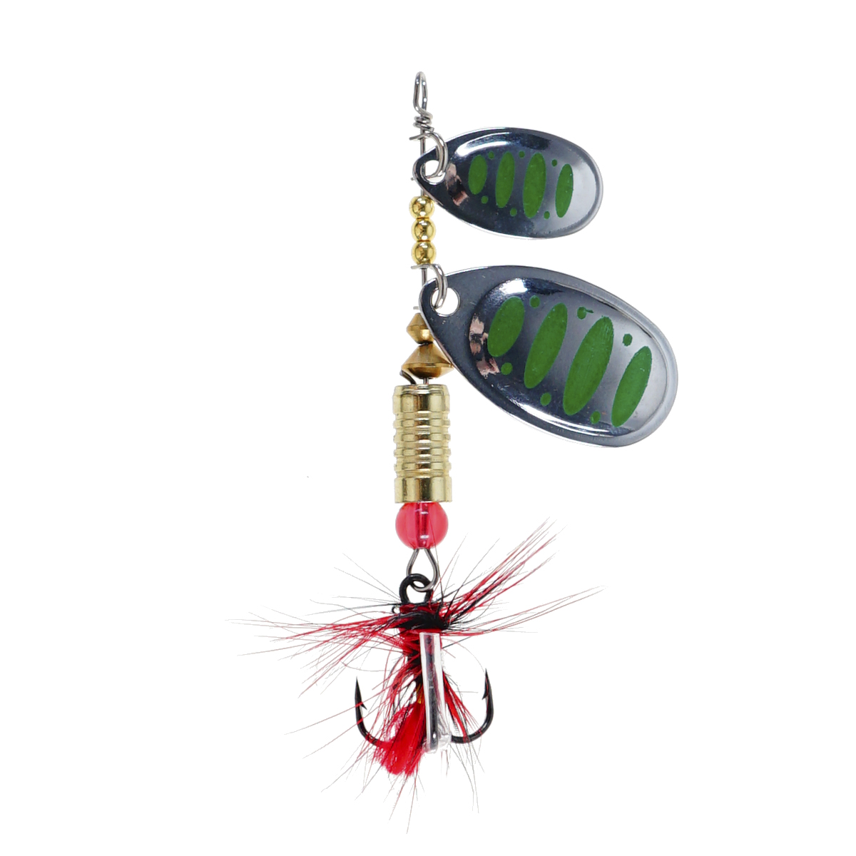 Сердечник-гусеница добавляет приманке дополнительную привлекательность для добычи. Контроль над игрой блесны легко осуществляется изменением скорости проводки: увеличение скорости повышает частоту вращения лепестков, уменьшение — снижает интенсивность игры.