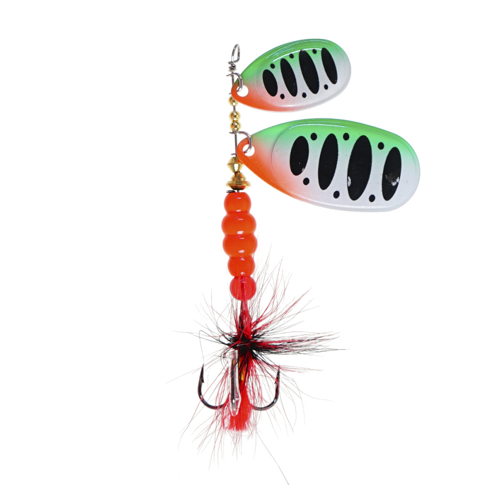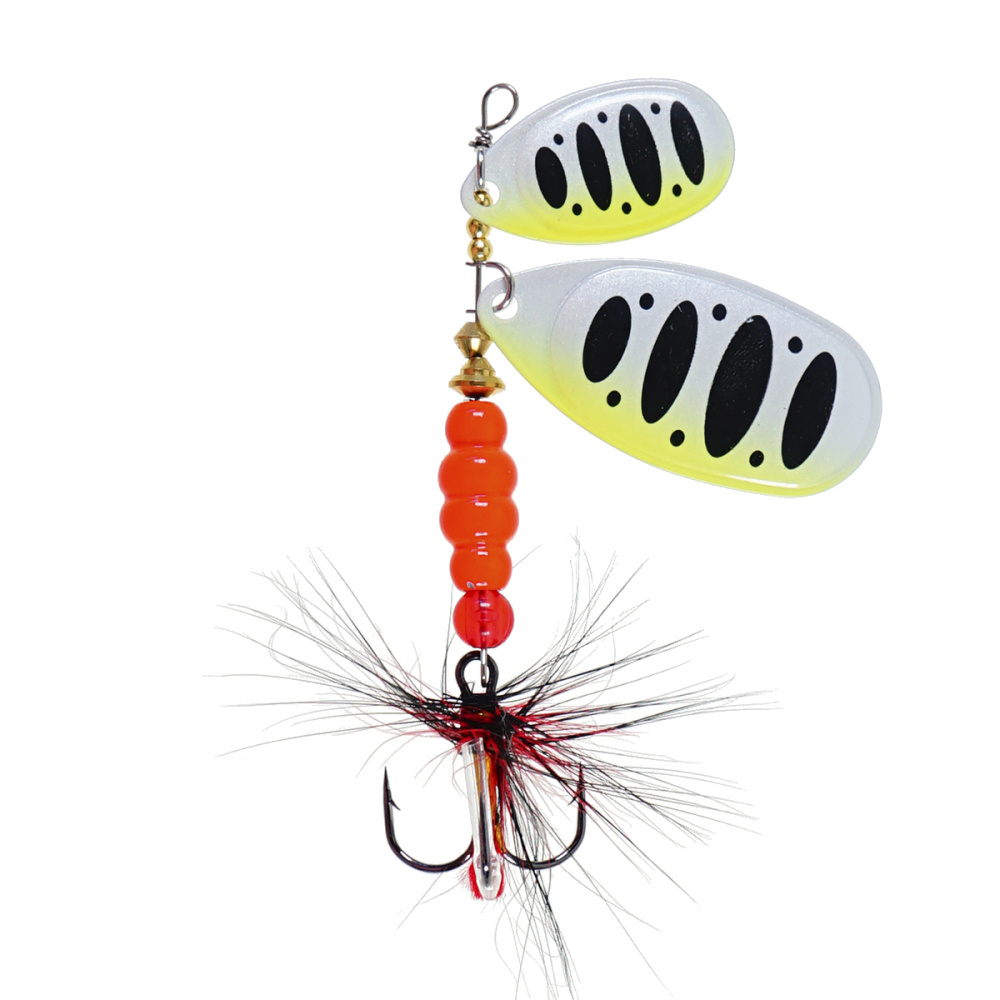 Сердечник-гусеница добавляет приманке дополнительную привлекательность для добычи. Контроль над игрой блесны легко осуществляется изменением скорости проводки: увеличение скорости повышает частоту вращения лепестков, уменьшение — снижает интенсивность игры.