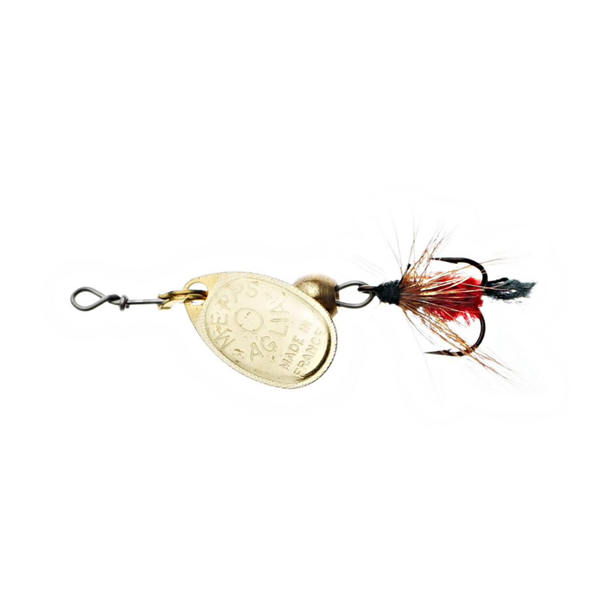 Блесна вращающаяся Mepps Aglia Mouche Gold/Red с мушкой №0 2,5гр золотистая, мушка красная
