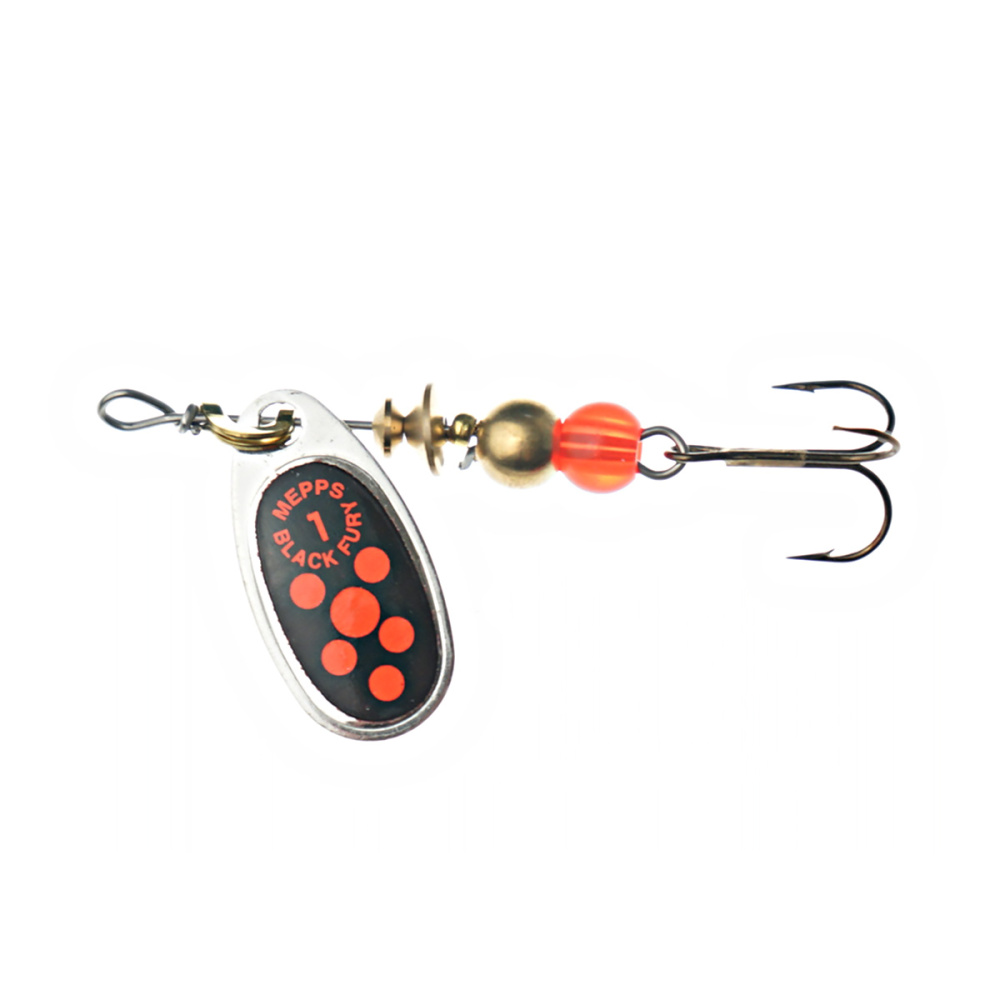 Блесна вращающаяся Mepps Black Fury Orange/Copper №4 8гр медная, черный фон, оранжевые точки
