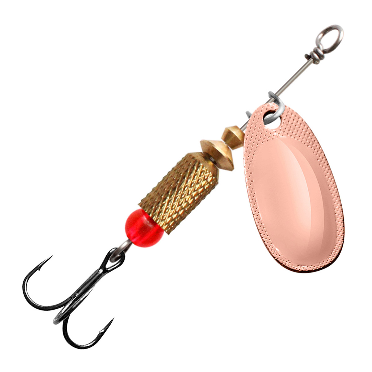 - полированного лепестка из цветного металла классической формы с боковой чеканкой, который делает игру приманки максимально стабильной – без «залипаний» в момент проводки. Выпуклая форма лепестка работает как сферическое зеркало, позволяя отражать любой лучик света, с какой бы стороны он не упал на блесну, что особенно полезно при ловле на глубине или в мутной, плохо освещенной воде.