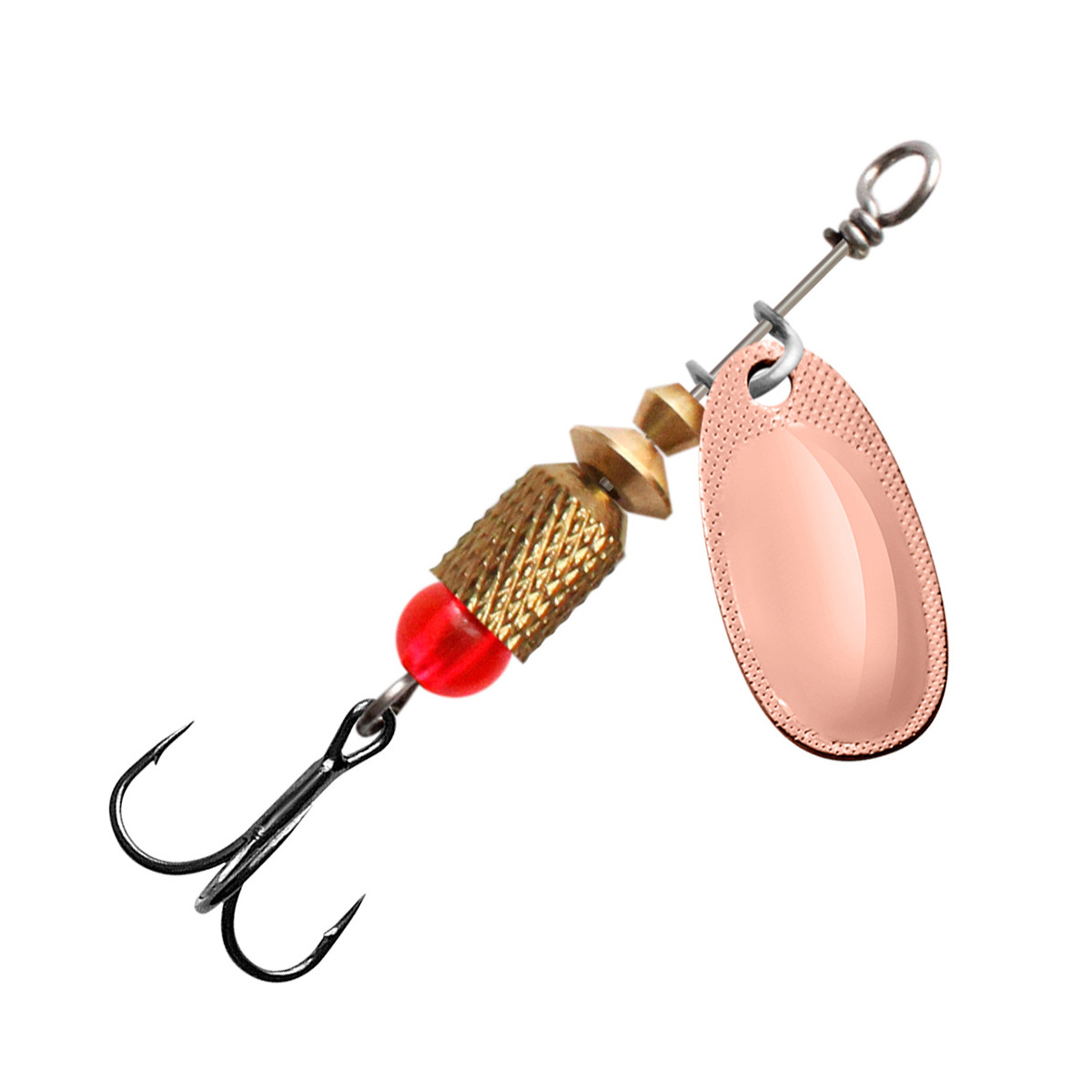 - полированного лепестка из цветного металла классической формы с боковой чеканкой, который делает игру приманки максимально стабильной – без «залипаний» в момент проводки. Выпуклая форма лепестка работает как сферическое зеркало, позволяя отражать любой лучик света, с какой бы стороны он не упал на блесну, что особенно полезно при ловле на глубине или в мутной, плохо освещенной воде.