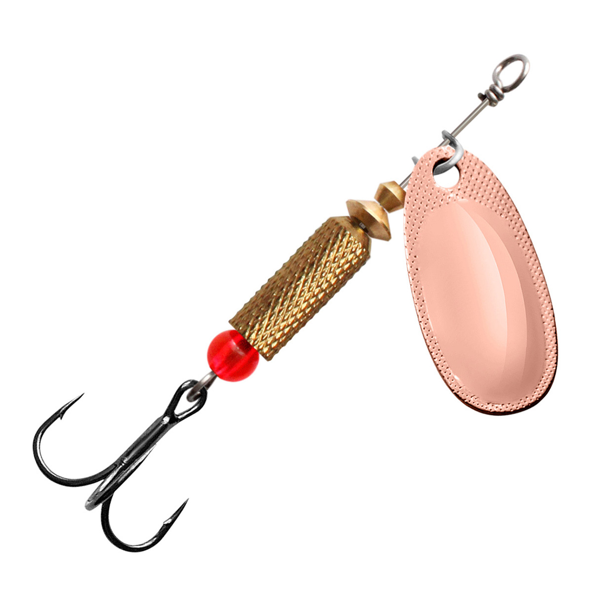 - полированного лепестка из цветного металла классической формы с боковой чеканкой, который делает игру приманки максимально стабильной – без «залипаний» в момент проводки. Выпуклая форма лепестка работает как сферическое зеркало, позволяя отражать любой лучик света, с какой бы стороны он не упал на блесну, что особенно полезно при ловле на глубине или в мутной, плохо освещенной воде.
